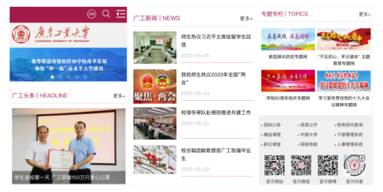 广工头条、广工新闻采用不同尺寸图片设计,增强学校新闻版块在视觉上的冲击力,提升视觉体验,图文并茂为阅读新闻带来好心情。