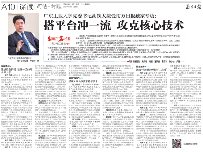 南方日报、南方+:前不久,省委全会提出“探索关键核心技术攻关新型举国体制的‘广东路径’”。作为省属理工科高校“长子”,广工如何担当作为?