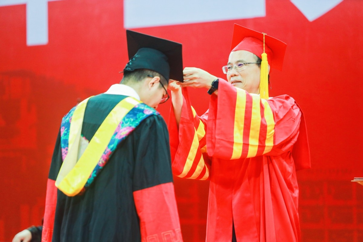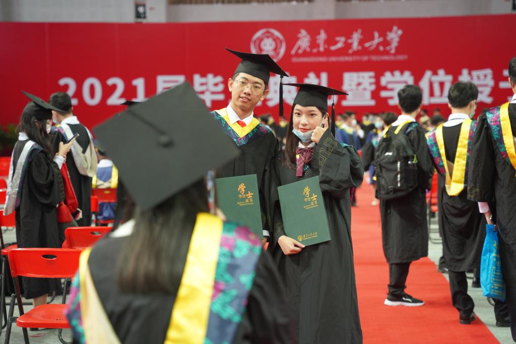广工今年共授予406名学生“2021届优秀毕业生”荣誉称号,学校党委书记胡钦太为优秀毕业生代表颁发荣誉证书。