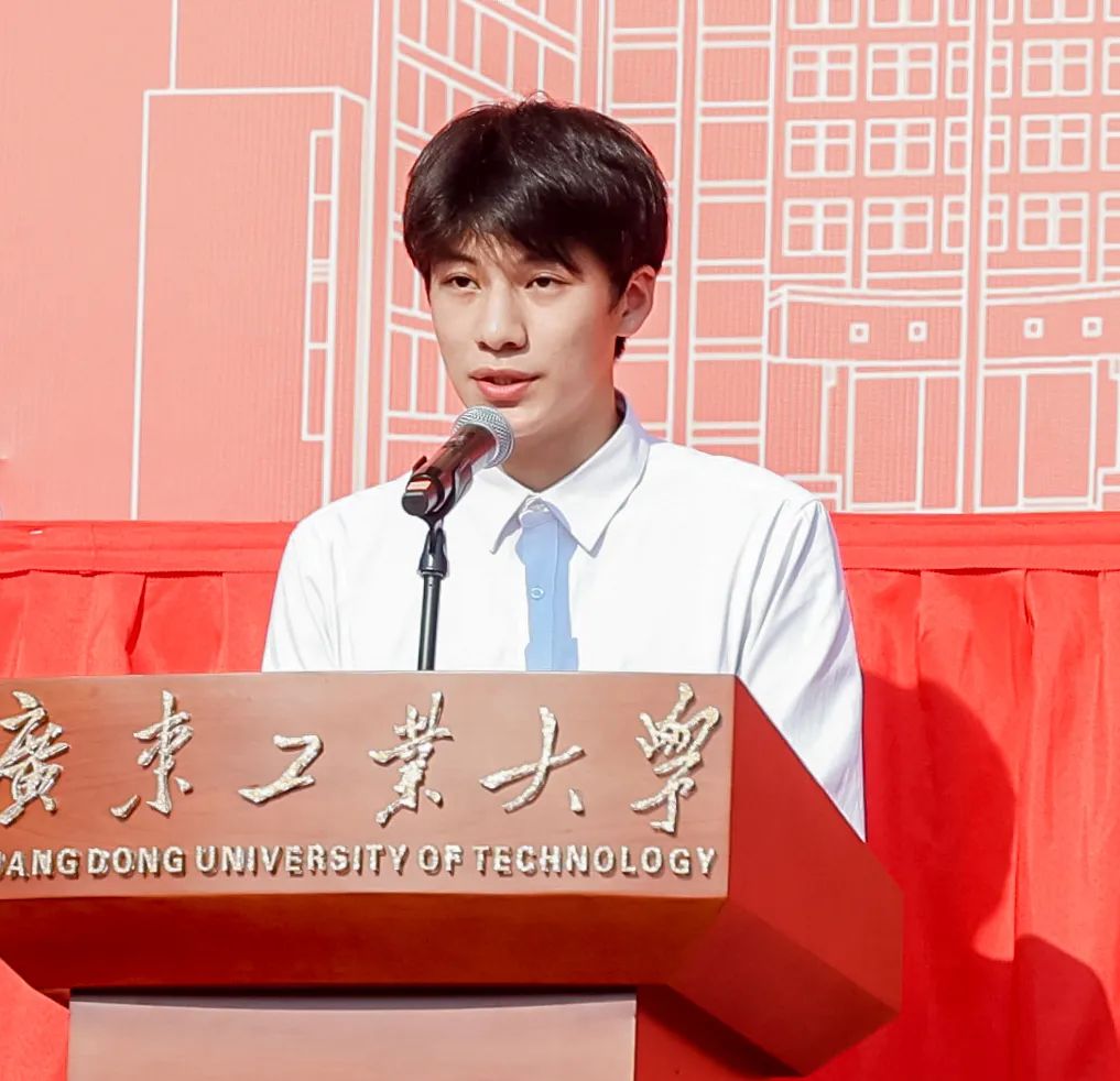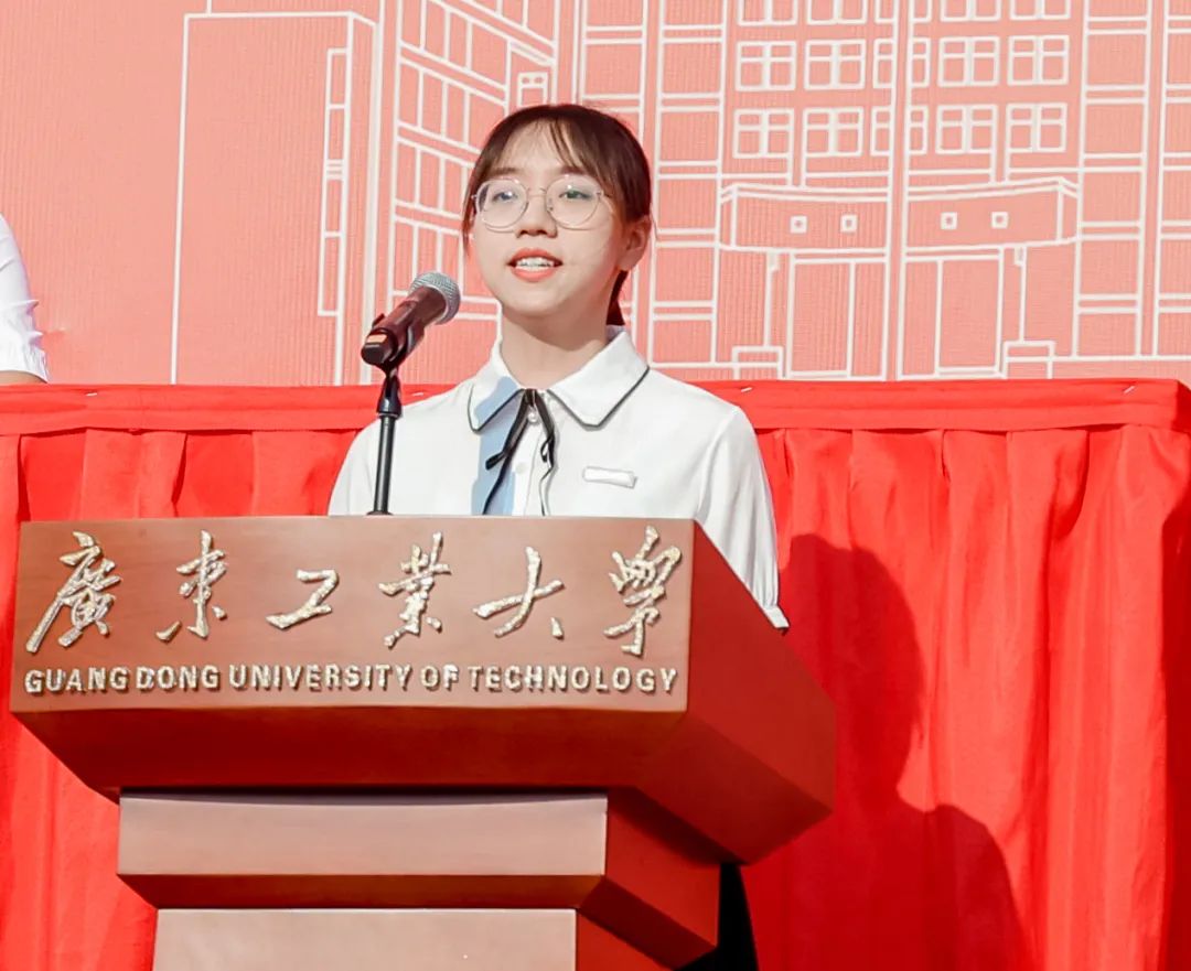 轻工化工学院2020级研究生胡蕾代表在校学生发言,她与同学们分享了自己的求学时光,“这是我在广工学习的第7个年头,在这里,我们有着无限的机遇与可能!”发言表达了作为广工学子的自豪,激励同学们永远不要黯淡自己的光泽,要积极面对学习和生活中的困难,正确对待一时的成败得失,永远不要忘了踏入大学校门时的豪迈,更不要忘了自己求学的初心。