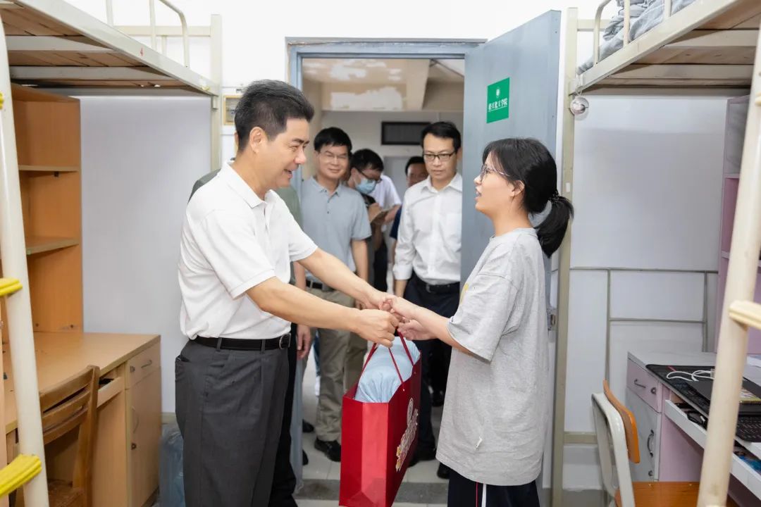 “天气变化大,有没有什么不适应?”“有什么困难要及时说,我们尽最大努力帮助。”在机电工程学院、土木与交通工程学院等学院新生宿舍中,胡钦太仔细询问大家的入学感受、求学经历,并为他们送上“新生大礼包”。他勉励新生们要好好学习、快乐生活,用最大热情拥抱广工,在广工实现人生价值与理想,努力成为全面发展的社会主义建设者和接班人,为广东在推进中国式现代化建设中走在前列贡献广工力量。