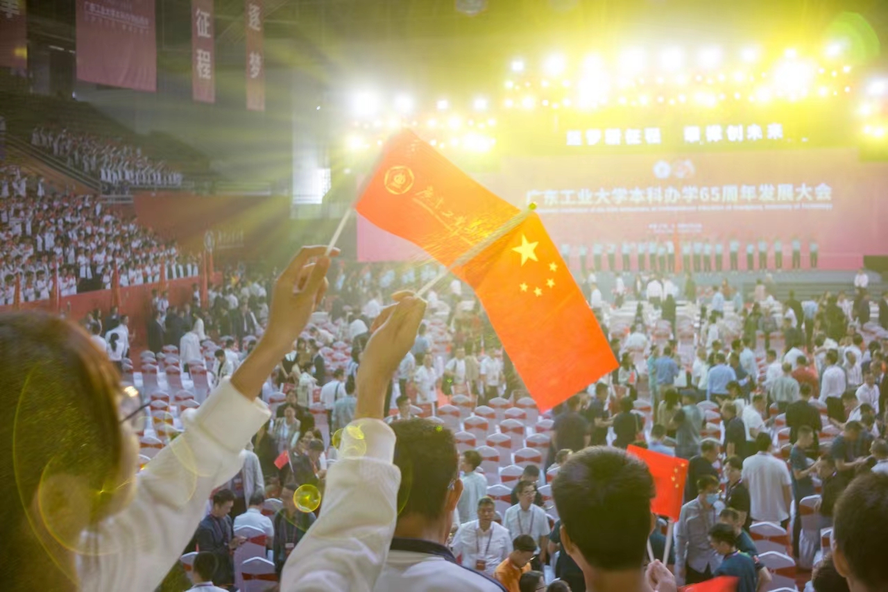 迎来65岁华诞的广工校园处处洋溢着喜庆氛围,焕发着勃勃生机;“祝母校65周岁生日快乐!”体育馆内,大屏幕播放着来自各地校友会、校友代表和海内外友人的祝福视频;舞台上传来耳熟能详的歌声,青春飞扬的广工学子高唱《有我》《红日》《挑战在路上》等曲目为大会暖场。大会播放环亚手机版登录入口本科办学65周年宣传片《逐梦》,与会人员共同忆往昔、看今朝、望未来。