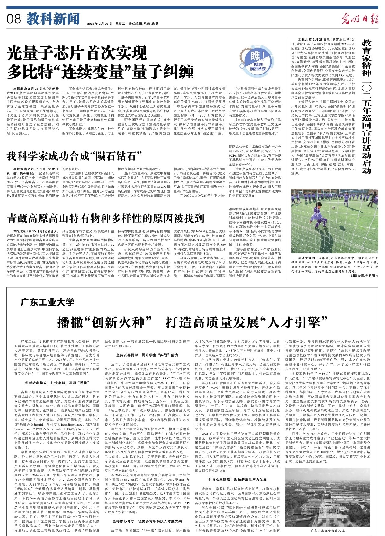 学校积极对接国家和广东省重大战略需求,全力推进实施“1+2+3”攀撑计划学科提升工程,遴选34个基础条件良好、团队成员稳定、研究方向明确、建设成效突出的校级科研团队,在政策制定和资源分配上向团队倾斜,给予专项资金支持,激发团队引才育才的积极性。“十四五”以来,学校自主培养国家级人才43人次,学校国家基金立项数中青年人才立项数占比超过35%,为学校发展提供有力支撑。学校机电工程学院崔成强教授团队,围绕半导体封装、检测装备及关键共性技术开展技术攻关,加快半导体封装及装备技术突破。