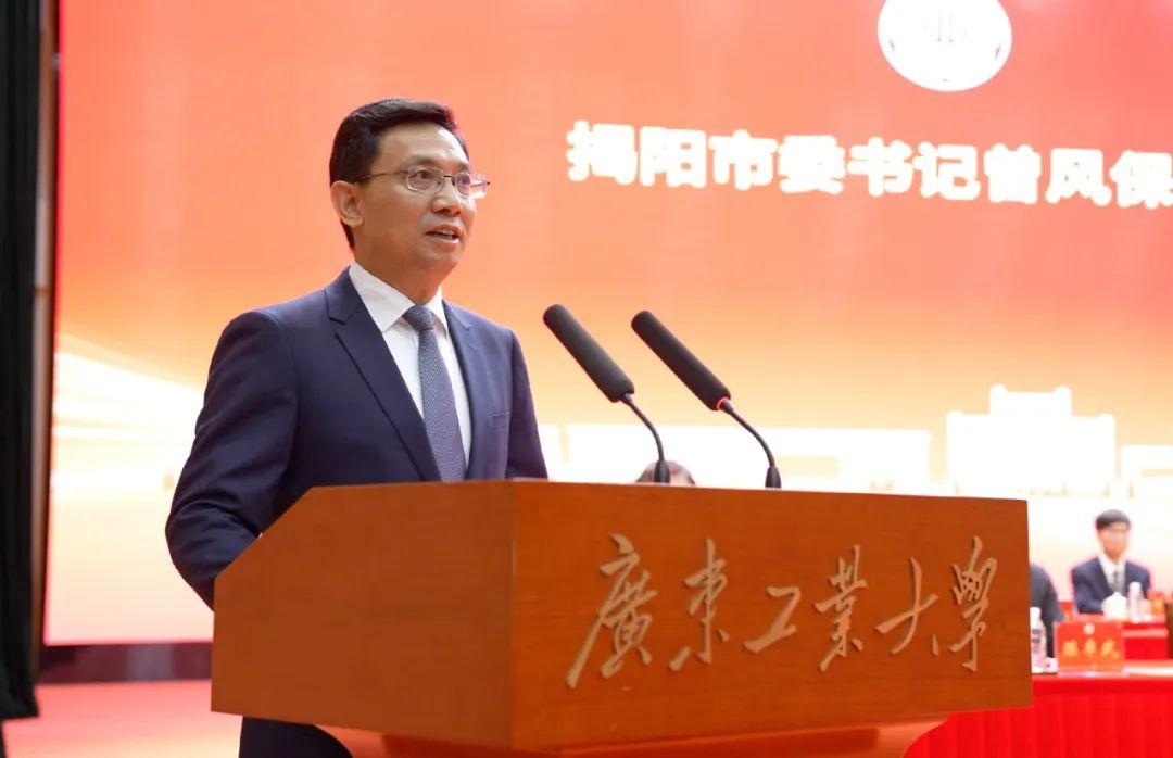 揭阳校区毕业典礼上,曾风保在致辞中为毕业生送上祝福:“同学们无论是留在揭阳这片沃土继续奋斗、还是到祖国需要的其他地方挥洒汗水,我们都一如既往关注、支持、看好、祝福大家!”他介绍了揭阳市、惠来县发展现状与未来蓝图,回顾了揭阳市与广工揭阳校区共成长、同进步的场景,勉励同学们胸怀“国之大者”,志存高远,不负青春韶华、不负祖国人民、不负伟大的时代;坚持终身学习,向社会学、向前辈学、向实践学,练就过硬本领,造就能扛事的硬肩膀、硬骨头,努力报效国家和人民;无畏风雨坎坷,砥砺奋斗,一往无前,开创自己美好人生新篇章。