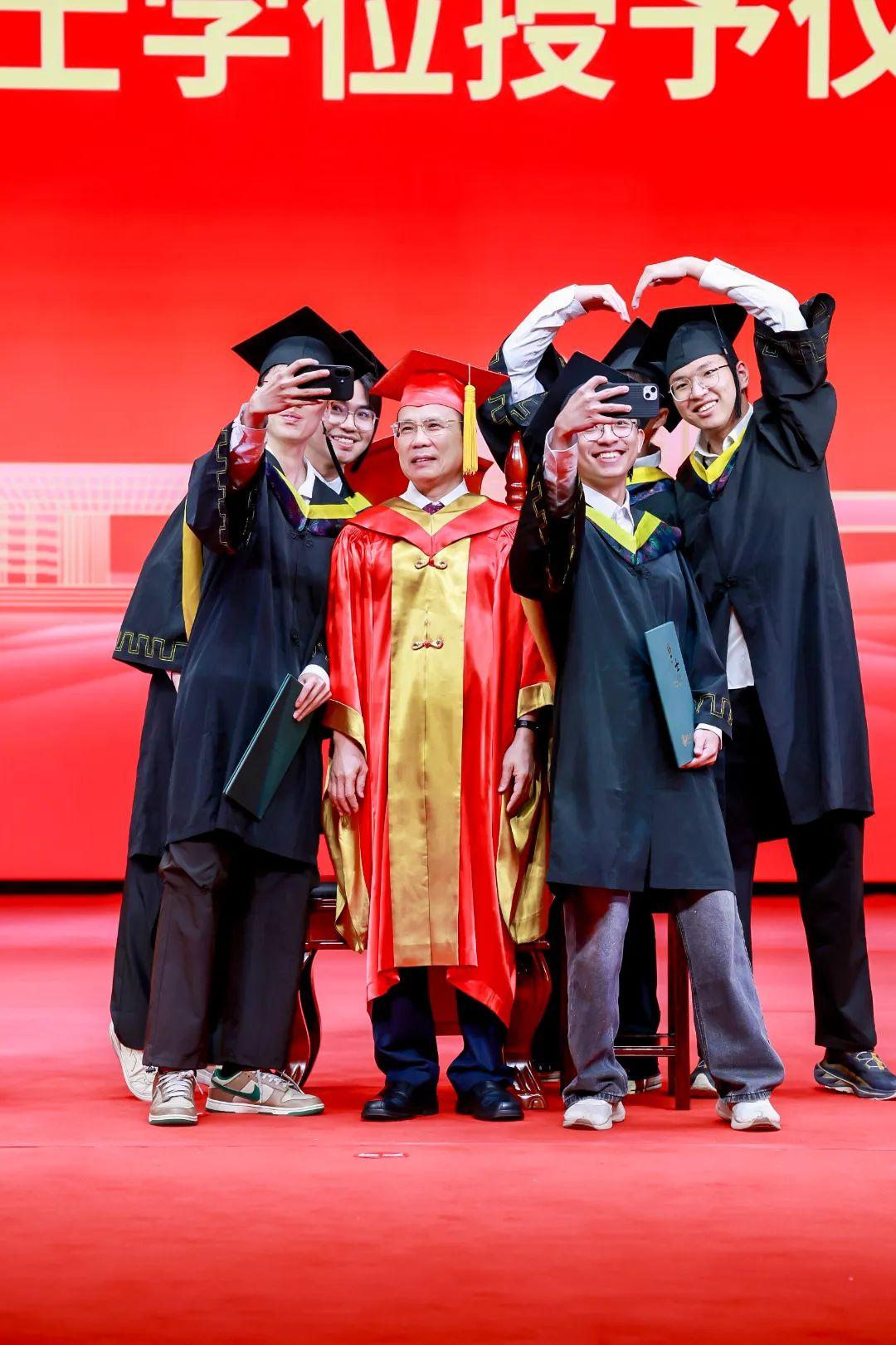 “母校永远是你们的坚强后盾。希望你们无论走得多远、飞得多高,都能找到自己的一片天空,凭借你的善良、智慧、勤奋和务实,使那片天空因为你而灿烂,因为你而闪烁。”白建刚以《鹏程万里为君贺 砥砺奋进向未来》为题,深情祝贺同学们学有所成,不负青春韶华,用行动诠释了“青春因奋斗而精彩,人生因奉献而升华”的真谛。他寄语同学们挺起民族脊梁、不负时代重托,传承弘扬“赤诚爱国、无私奉献”的东深精神、“团结拼搏、不畏强手”的男篮精神、“团结、勤奋、求是、创新”的校训精神,挺起“工科人”的精神脊梁,攻克“卡脖子”难题,勇攀科学高峰,用智慧和汗水为强国建设贡献力量。