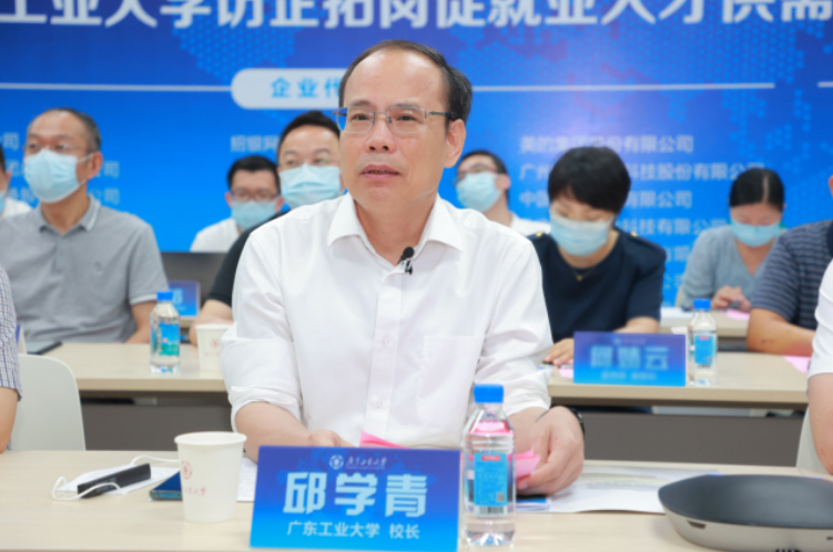 会上,邱学青首先代表学校向与会企业嘉宾和校友组织代表对学校办学和毕业生就业等方面的鼎力支持表达了由衷感谢,他以“攀高峰强特色,创一流育英才”为题,重点介绍了学校“大、实、特、快”的发展特点和工大学子“好用、实用、耐用、听话、出活”的人才特质;同时以“1+2+3”攀撑计划新愿景、人才培养新探索、“1234”就业育人新目标,共襄校企合作新发展。邱学青热情表示,期待与业界开展多层面的人才培养与产学研合作,共促毕业生更高质量就业和校企协同发展。邱学青讲话得到与会嘉宾的热切回应,纷纷为广工发展与毕业生素质点赞。