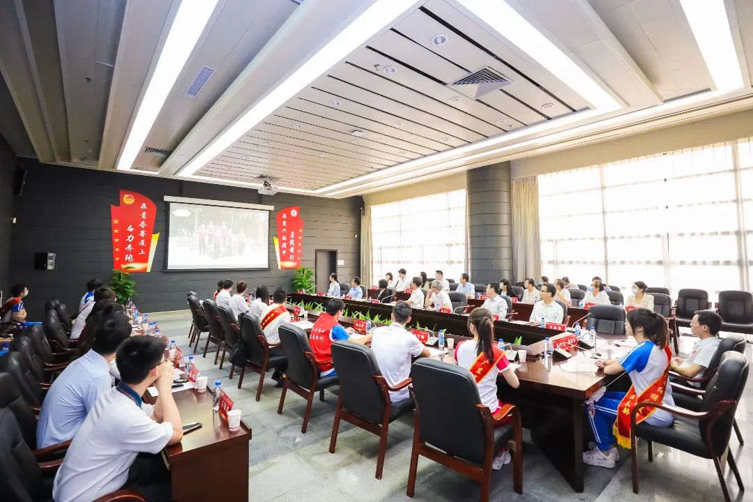 为迎接党的二十大胜利召开,庆祝中国共产主义青年团成立100周年,引领广大团员青年继承和发扬五四精神,5月5日上午,学校在大学城校区组织开展“青春献礼二十大,强国有我新征程”主题活动。学校党委书记胡钦太,党委常委、副校长陈卓武,党委常委、组织部部长李靖茂,党委常委、宣传部部长张育广,党委办公室、校长办公室,党委学生工作部,校团委,研究生院,体育部等部门主要负责人出席活动。各学院团委书记,中国大学生自强之星,广东青年五四奖章(提名奖)、“两红两优”荣誉称号获得者,学校“十佳百优”荣誉称号获得者等参加活动。