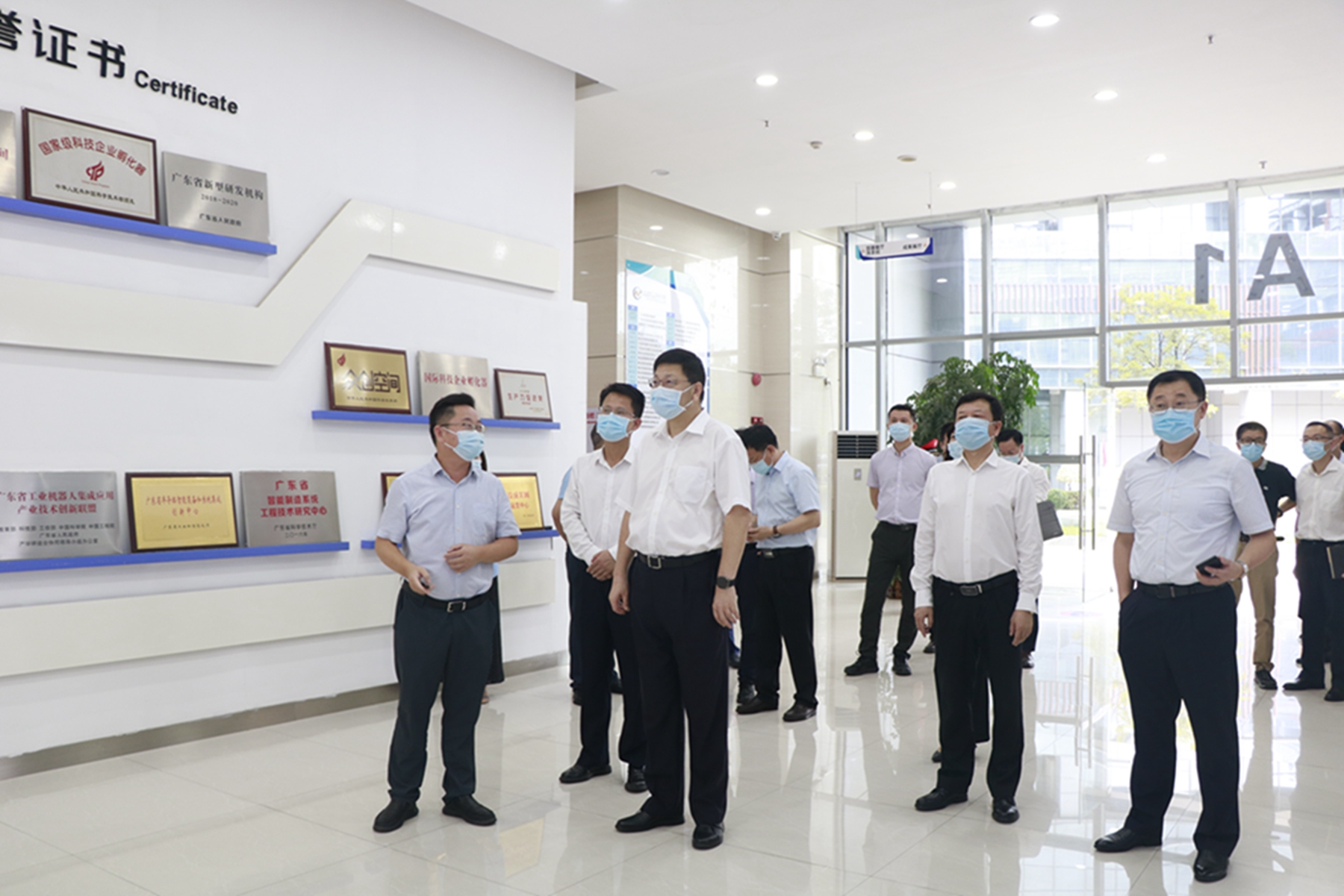 在成果展厅,研究院负责人介绍了研究院整体发展情况。当前,研究院以半导体与集成电路、人工智能、智能装备与机器人、3D打印、工业互联网为核心,已建成广东省半导体智能装备和系统集成创新中心、广东省智能制造系统工程技术研究中心、广东省工业机器人集成应用公共技术支撑平台、广东3D打印应用技术创新中心等6个省级中心/平台,已累计引进300多名国内外高端人才,培育250多个高科技创业团队,孵化近300家高科技企业(其中39家获高企认定),获批授权专利2000余项(含孵化企业)。