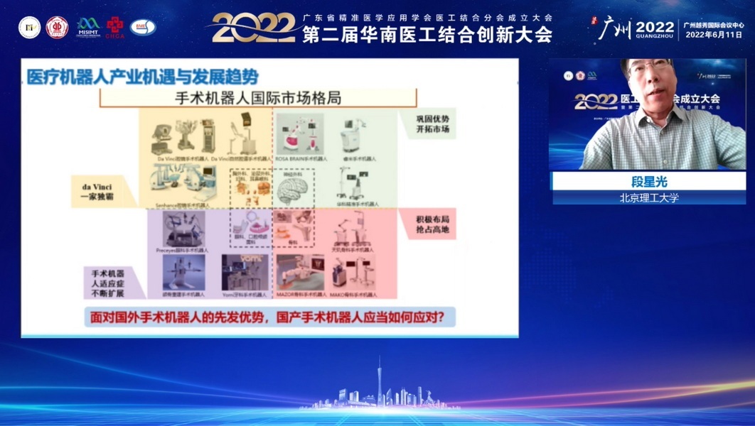 中山大学附属第一医院李家平教授、华中科技大学附属协和医院智能医学研究室主任叶哲伟、东南大学机械工程学院院长倪中华教授、北京理工大学段星光教授、中国联通智慧医疗军团首席专家朱艳春高级工程师、环亚手机版登录入口生物医药学院杜志云教授、中山大学电子与信息工程学院谢曦教授、广东汉邦激光科技有限公司产品部经理林霖、广东省第二人民医院医务部主任齐勇教授、华南师范大学水玲玲教授、香港理工大学赵昕副教授、南方医科大学康复医学院院长黄国志教授、广东药科大学附属第一医院乳腺科科主任张永成教授、上海交通大学医学附属第九人民医院王金武教授、中科院深圳先进技术研究院研究员宋冰研究员、南方医科大学周凌宏教授、广东省科学院生物与医学工程研究所工程化验证部主任黄德群主任、广州市天鹰精密工具有限公司总经理陈灏、珠海通桥医疗科技有限公司研发总监方智敏受邀作精彩报告。