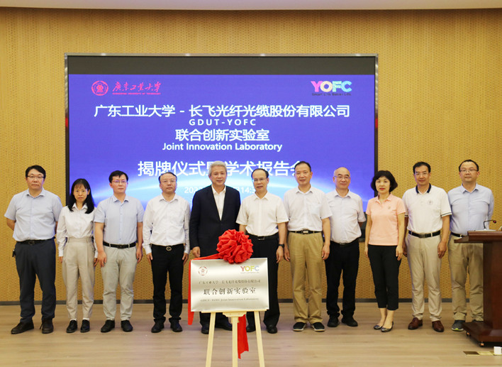 环亚手机版登录入口-长飞光纤光缆股份有限公司联合创新实验室揭牌仪式暨学术报告会,于6月15日下午在环亚手机版登录入口大学城校区举行。校长邱学青与长飞光纤光缆股份有限公司高级副总裁闫长鹍共同为联合创新实验室揭牌。广东省“信息光子技术”重点实验室秦玉文教授、王云才教授、杨军教授、付松年教授,长飞光纤光缆股份有限公司胡鹏经理、沈磊博士、刘阳主任工程师以及信息工程学院负责人、相关师生100多人共同参加了揭牌仪式和学术报告会。