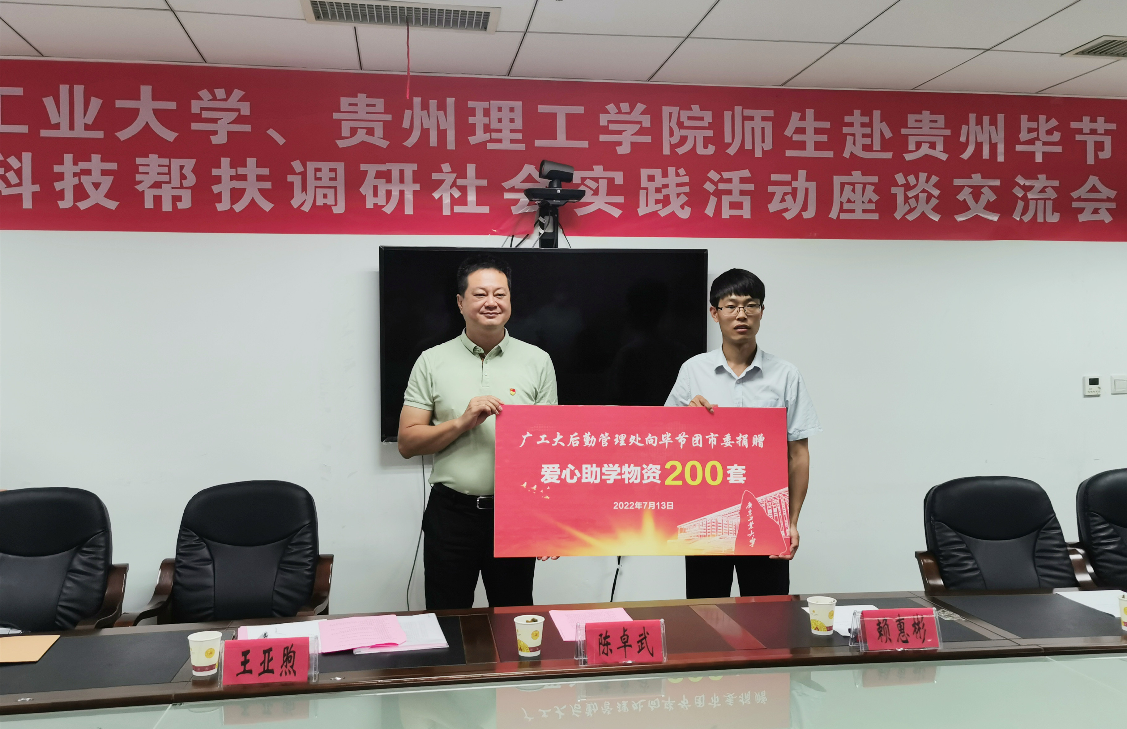 连日来,我校“喜迎二十大、永远跟党走、奋进新征程”2022年暑期“三下乡”社会实践活动正在如火如荼地开展,2000余名广工学子走出校园,分赴各地开展形式多样、内涵丰富的社会实践活动。7月12-15日,学校党委常委、副校长陈卓武一行赴贵州省看望慰问我校与贵州理工学院共建的校级重点立项社会实践团队,为实践团队的师生们送去关怀和问候,并与贵州大学、贵州理工学院、共青团毕节市委、毕节市科技局等单位就创新创业实践育人、科技帮扶调研等工作进行深入交流。