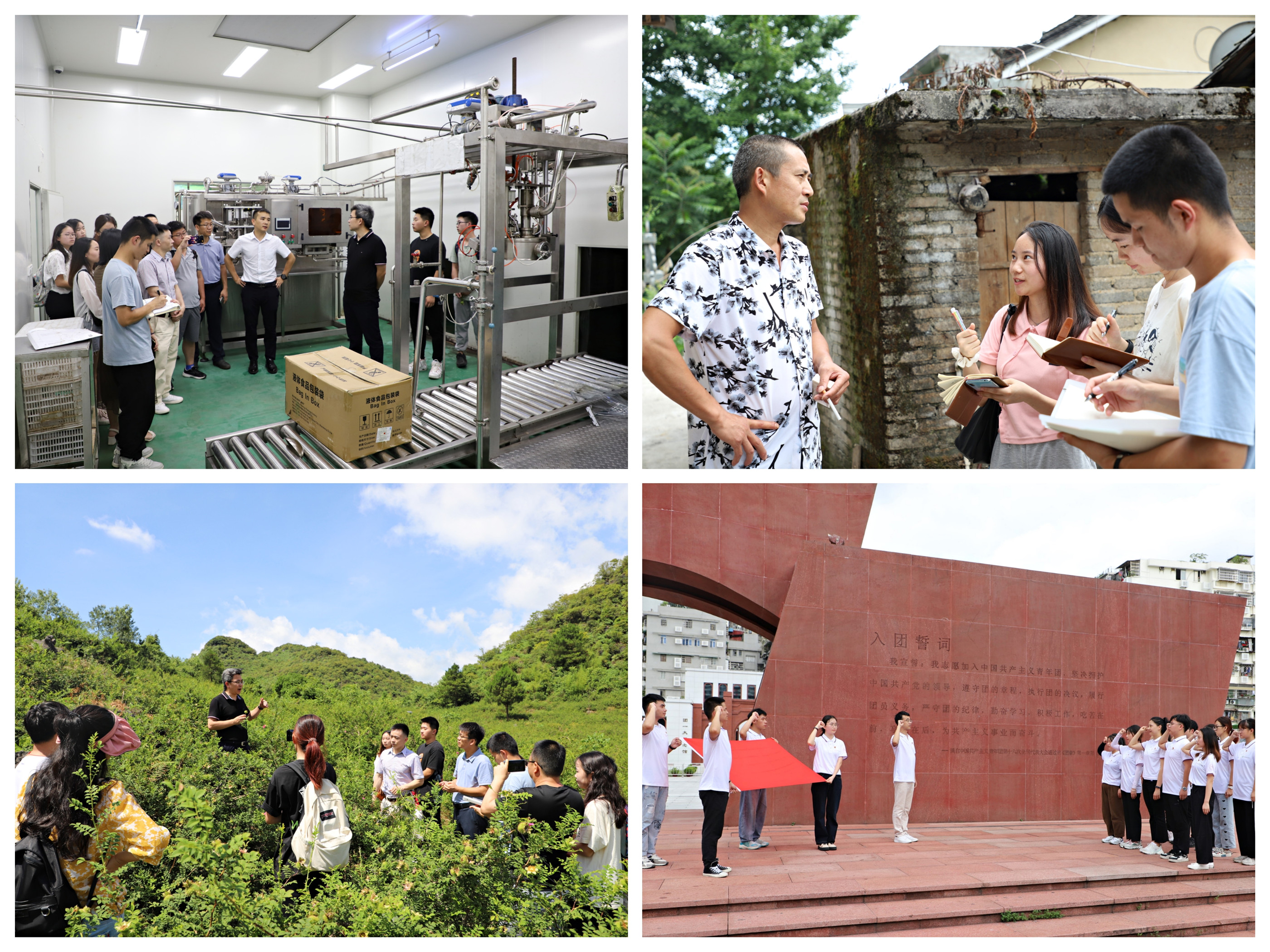在广州,实践队前往了团一大广场、中共三大会址纪念馆、辛亥革命纪念馆,通过重温入团誓词、现场朗诵《百年共青团,青春诵给党》、现场微团课等形式进行爱国主义教育,学习革命精神,锻铸爱国精魂。在贵州,实践队前往了遵义会议旧址,真切地感受中国共产党克服重重困难,取得一个又一个胜利的艰辛而辉煌的历程;在平塘天眼感受国之大器的艰难险阻和“南仁东精神”;在遵义洗马镇梅子坝村的田间山头了解当地经济发展状况,感受脱贫攻坚的伟大成绩;在当地龙头企业——瓮福化工公司感受敢闯敢拼的企业精神。