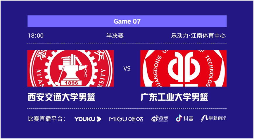 根据赛程,广工将于7月30日18:00在半决赛中对阵西安交通大学。