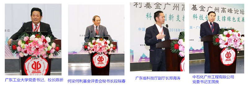 中石化广州工程有限公司党委书记王国良介绍了在座院士学者与中石化的技术交流,有助于广东高校院所以及省科技厅的支持,中石化的绿色发展工作才能得以顺利开展,同时也受益于何梁何利基金的支持,最后对本次高峰论坛的成功召开寄予了衷心的祝福。