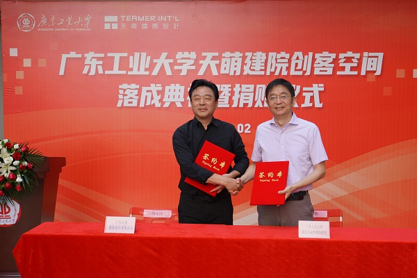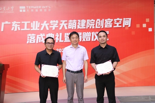 9月2日上午,天萌建院创客空间落成典礼暨捐赠仪式在东风路校区举行。学校党委常委、副校长陈卓武,学校党委常委、宣传部部长张育广,后勤管理处、对外联络与校友事务办公室、创新创业学院、建筑与城市规划学院等单位负责人。广州天萌建筑设计有限公司董事长陈宏良,总裁颜家国,以及广工师生代表出席典礼。
