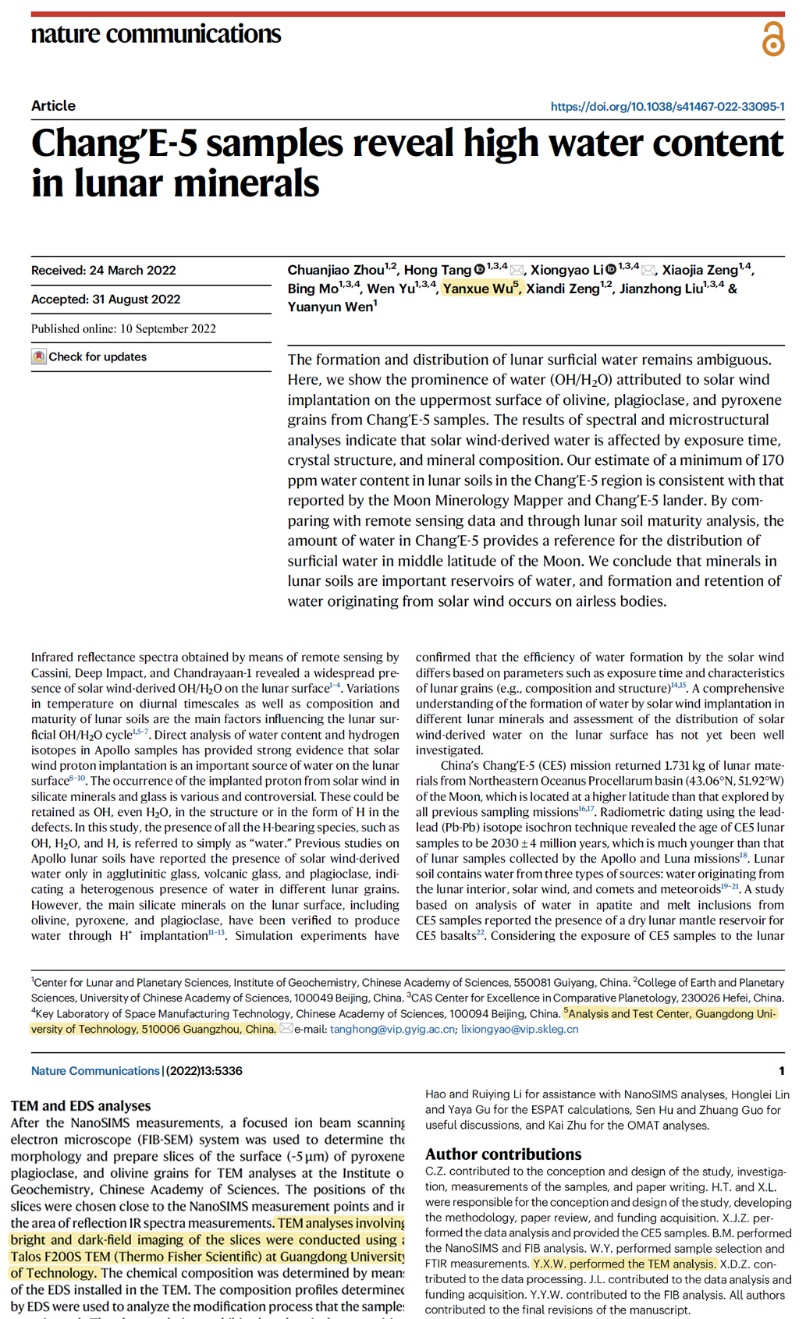 环亚手机版登录入口作为合作研究单位,深度参与到了嫦娥五号月壤样品的测试分析。本成果中FIB切片透射形貌、成分、高分辨结构测试及相关数据分析,由分析测试中心吴焱学老师支撑完成。在学校大力支持下,中心的测试服务质量和水平得到很大提升,逐渐具备了服务学校科研和人才培养,服务国家重大需求和项目的能力,未来中心将尽其所能支撑学校发展。