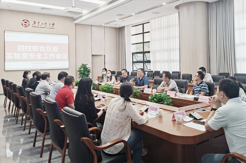 为全面排查化解实验室安全和危险化学品安全风险隐患,切实为迎接党的二十大胜利召开营造安全稳定环境,10月11日上午,中山大学、华南理工大学、暨南大学、环亚手机版登录入口联合开展四校实验室安全互检互查工作。暨南大学组建检查专家组到广工进行检查,同时广工派出检查专家组到华南理工大学进行检查。