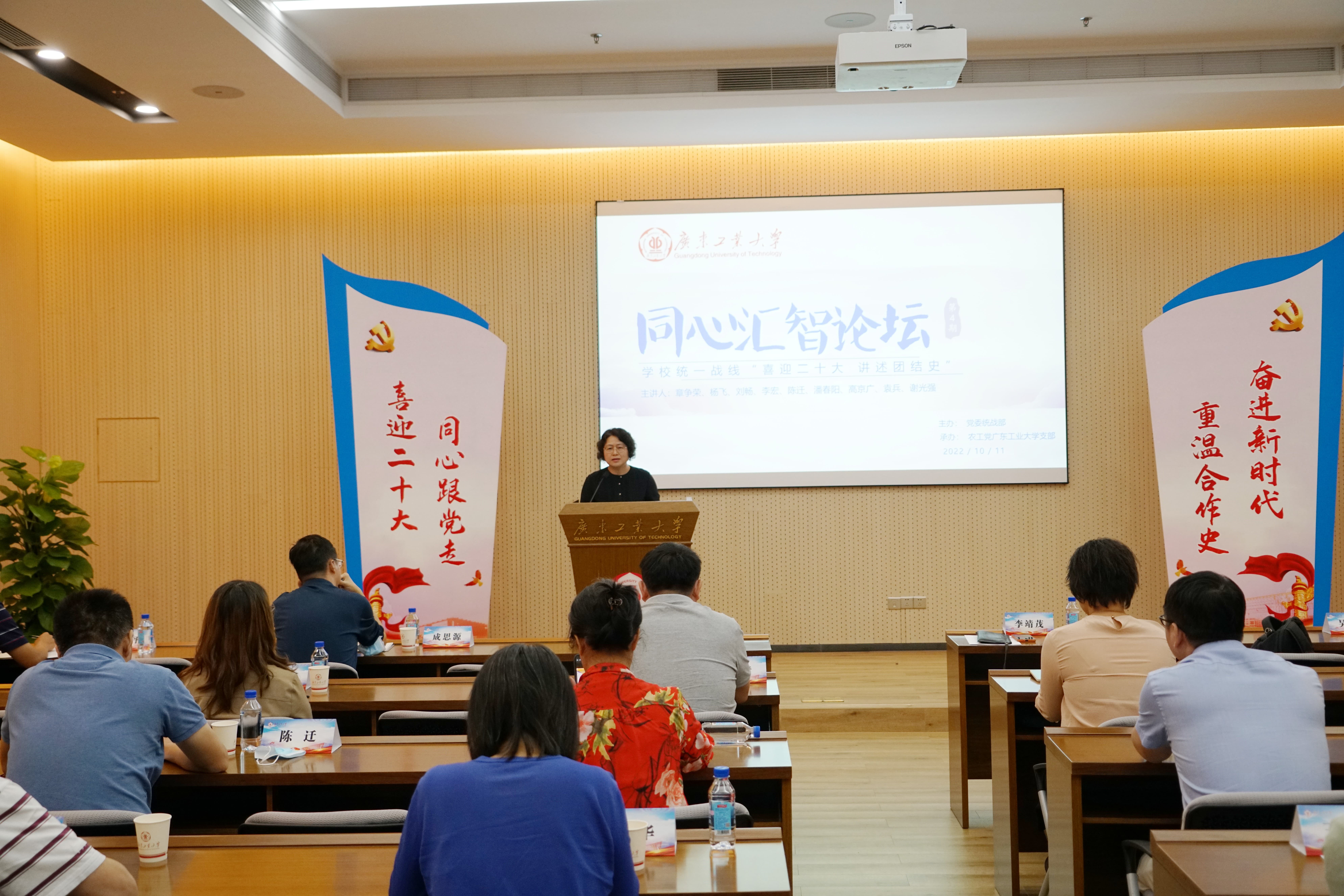10月11日,学校在大学城校区第二会议室依托“同心汇智论坛”第四期开展 “喜迎二十大 讲述团结史”主题活动,本次论坛由党委统战部主办、中国农工民主党广工大支部承办。农工党广工大支部主委霍延平教授主持论坛,学校党委常委、组织部、统战部部长李靖茂出席并讲话,党委统战部相关人员,学校各民主党派、统战团体骨干成员参加了论坛。