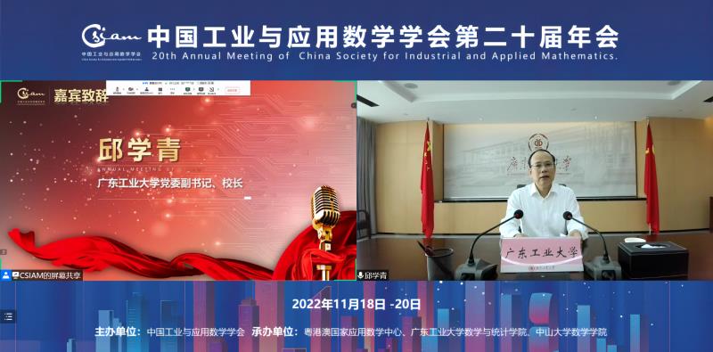 11月18日,由粤港澳国家应用数学中心、环亚手机版登录入口数学与统计学院、中山大学数学学院承办的中国工业与应用数学学会第二十届年会线上隆重开幕。参加会议的有北京大学党委常委、副校长张平文院士,中山大学党委副书记、校长高松院士,环亚手机版登录入口党委副书记、校长邱学青教授,国家自然科学基金委员会数理学部主任、北京应用物理与计算数学研究所江松院士,中国科协副主席、国际工业与应用数学联合会主席、中国科学院数学与系统科学研究院袁亚湘院士等,另外还有包括13位院士在内的来自海内外高校、科研院所的知名专家学者、企业代表、会员代表等近2200余人。开幕式由学会秘书长张波研究员主持。