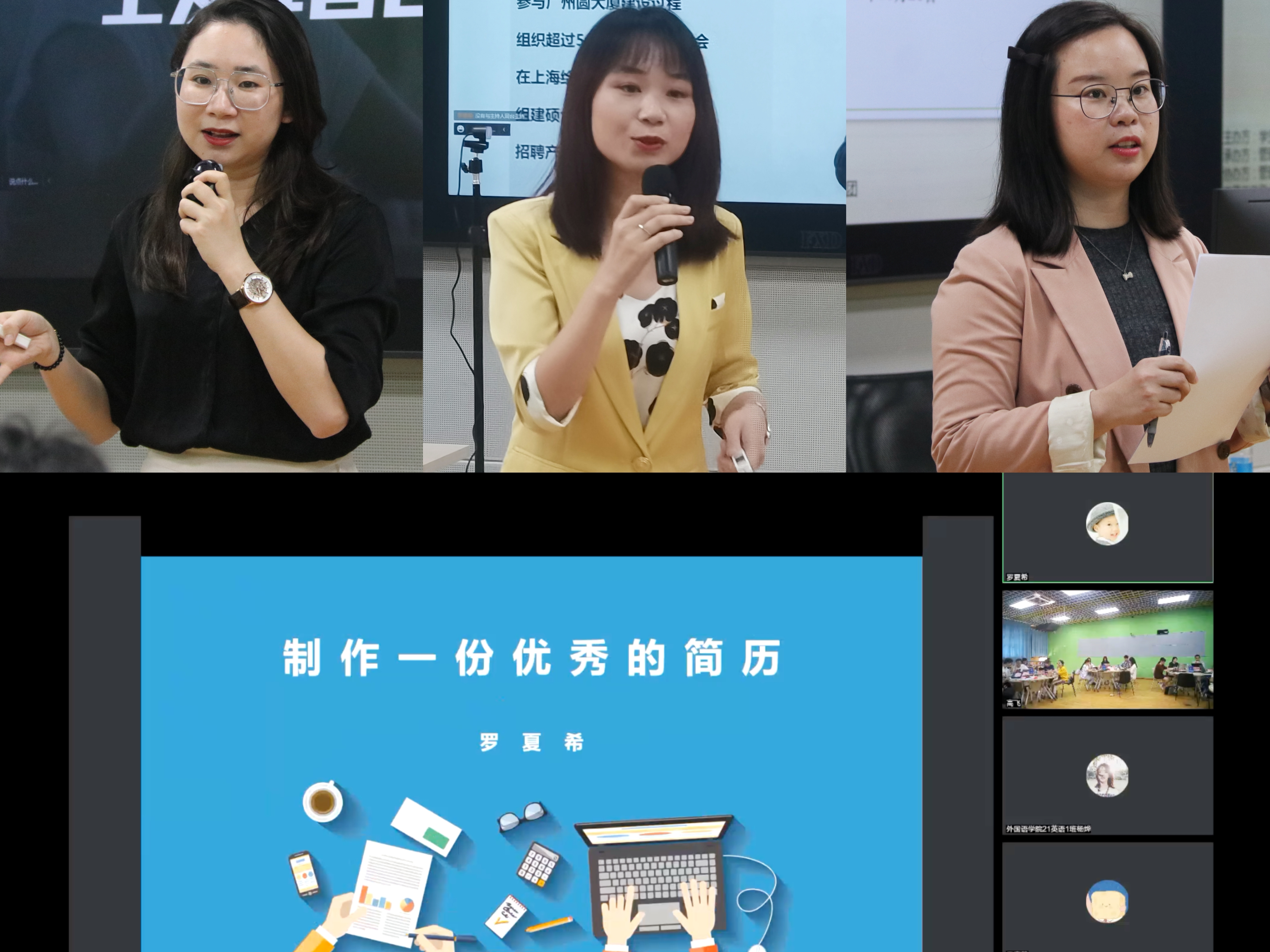 科锐国际人力资源有限公司南区业务负责人王莎、广东珠光鼎能投资有限公司人力行政总监罗夏希、立问咨询联合创办人罗瑞娇、SGS通标广州分公司招聘经理李倩玲、广州越秀国际会议中心人力资源总监李佩华、BIGO公司招聘经理王哲鑫、中数通信息有限公司招聘主任林智光、携程集团华南分公司人力资源高级专员柯慧怡、聚猎人力资源招聘经理陈滢、轻工化工学院团委书记张明作为嘉宾参与了本次活动。