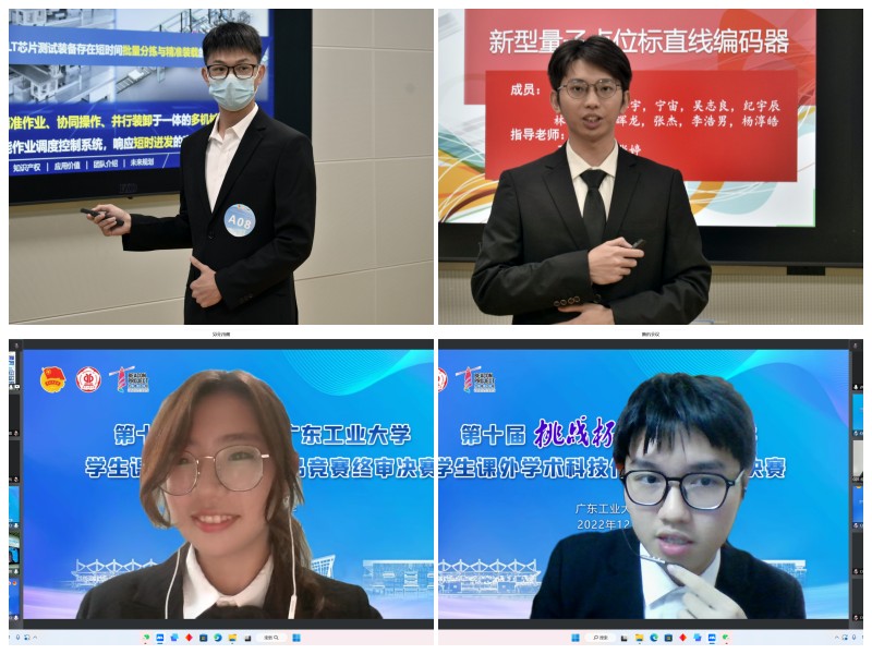 12月8日,第十届“挑战杯”环亚手机版登录入口学生课外学术科技作品竞赛终审决赛在大学城校区文化活动中心和教学六号楼顺利举行。93件入围终审决赛的团队通过线上线下相结合的形式完成终审答辩。评审委员会常务副主任、副校长陈卓武在评审委员会全体会议上致欢迎辞;评审委员会副主任、副校长杜承铭、王成勇、栾天罡、余林担任大赛评委。学校相关部处负责人、各学院党政负责人、师生代表参观了优秀作品展。本次竞赛得到保卫处、基建处、后勤管理处、网络信息与现代教育技术中心等有关部门和各学院的大力支持。