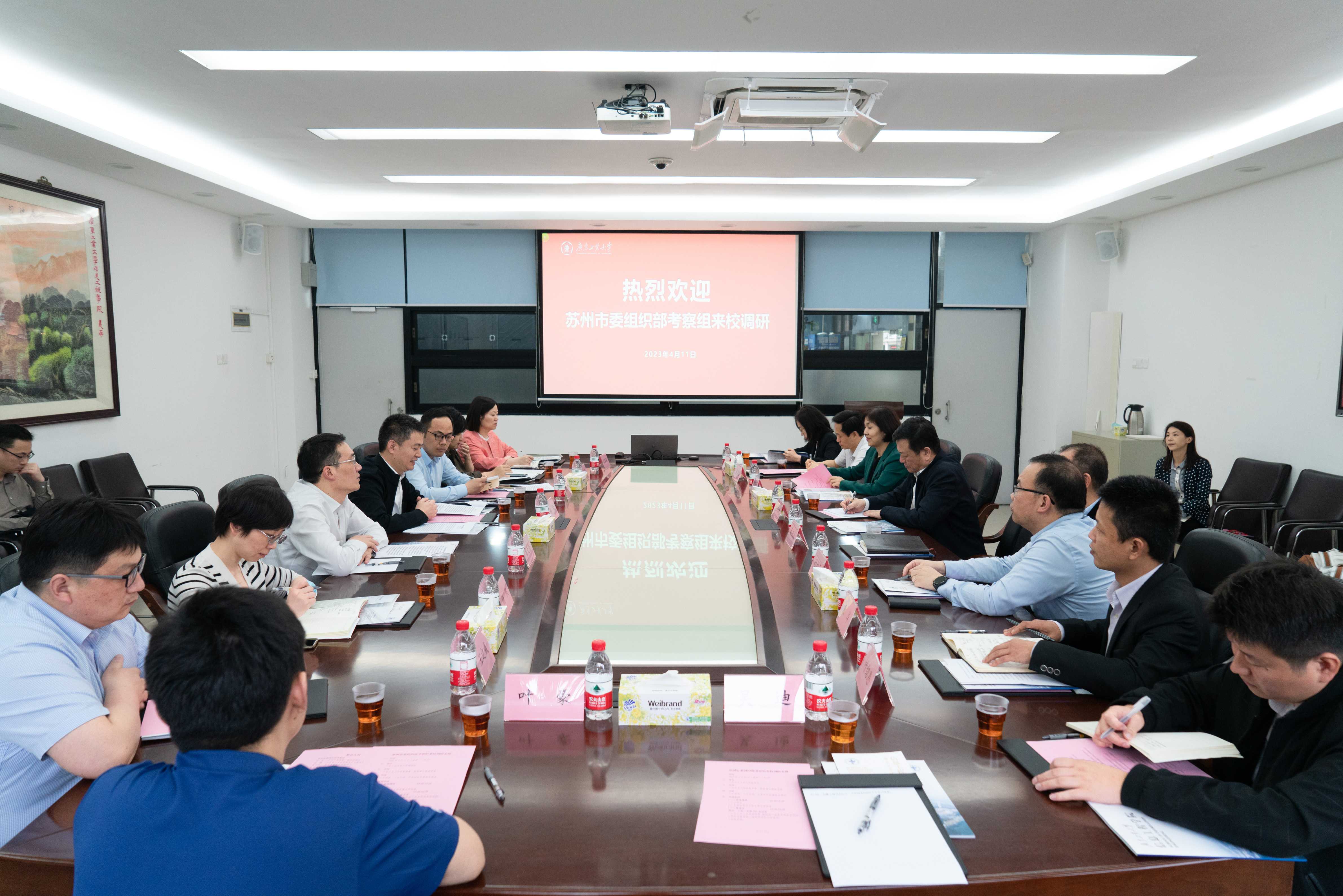 近日,苏州市委组织部部长祁松带考察组一行9人,到学校考察调研。学校党委常委、副校级干部张学理,信息工程学院、创新创业学院、研究生院、人事处、产业技术与开发院等单位相关负责人及先进光子技术团队负责人参与座谈交流。