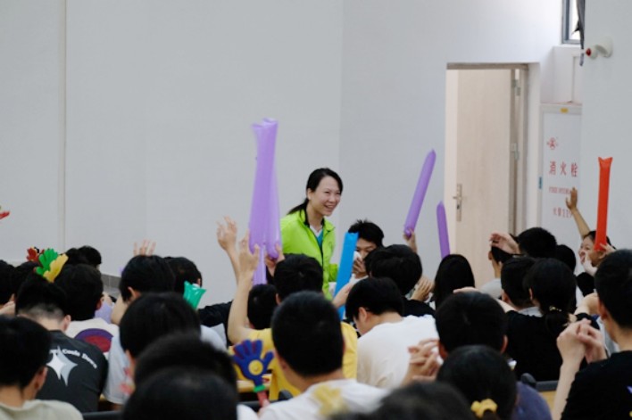在现场师生热烈的掌声下,张洁雯走上了讲台和师生分享了成长之路和励志小故事,用她的亲身经历向在场的每一位学子传递着坚韧不拔、超越自我、顽强拼搏、永不言败、为国争光的中华体育精神。