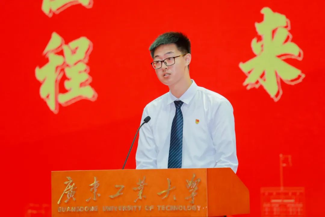 仪式为2023届毕业生校友联络员颁发聘书,表彰2023届优秀毕业生。熟悉的旋律奏响,全体师生起立合唱校歌《逐梦》。学校希望同学们坚定理想信念,勇担时代使命,努力成为可堪大用、能担重任的栋梁之才,为全面建设社会主义现代化强国,全面推进中华民族伟大复兴,贡献广工人的智慧与力量。