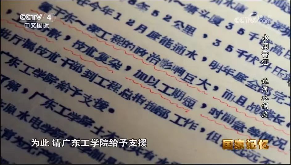 “在那个专业人员奇缺的年代,这些天之骄子选择延迟一年毕业,打起背包,奔赴东深工地。”“虽然条件艰苦,但同学们都铆足了劲,为东深供水工程、为香港同胞的用水,贡献自己的力量。”近日,东深供水工程建设者、广工校友何霭伦、陈汝基、杜美荣、冯正、陈世隆等,登上了中央电视台CCTV-4国家记忆栏目播出的《水润香江》纪录片,分享了当年参与东深供水工程建设的难忘回忆。