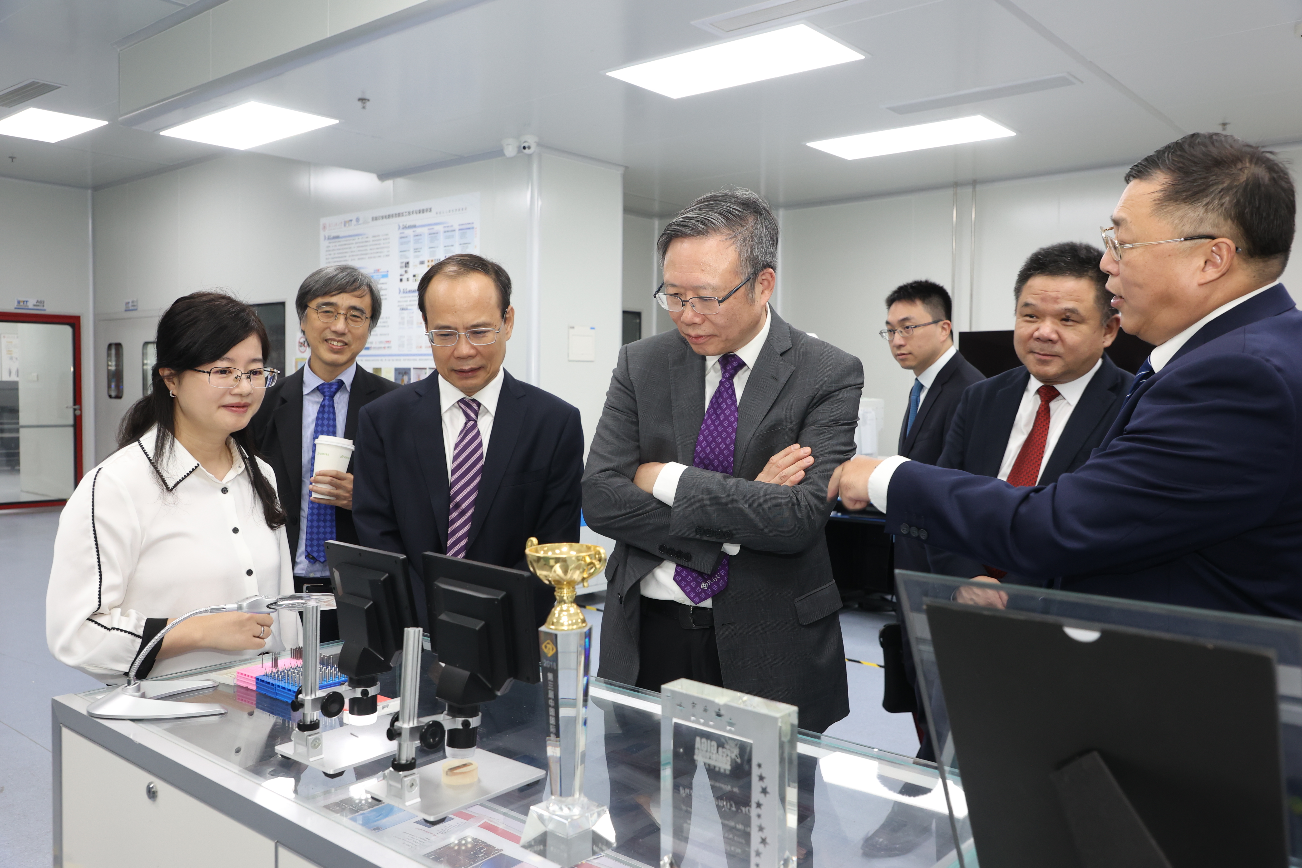 会见座谈之前,滕锦光一行在邱学青、杜承铭、王成勇、张学理等陪同下分别参观了创新创业学院、高性能工具全国重点实验室(环亚手机版登录入口)。王成勇对高性能工具全国重点实验室(环亚手机版登录入口)的相关建设及学术进展作了讲解。张学理介绍了创新创业教育的育人成果及粤港澳合作情况。滕锦光还与相关师生进行亲切交谈,了解学校创新创业教育情况及前沿技术成果。