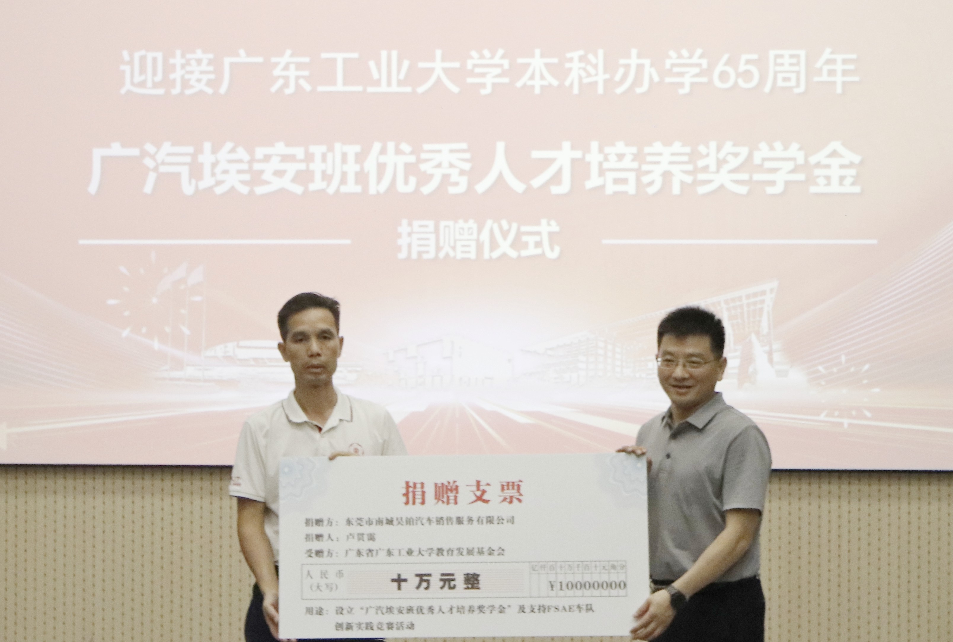 恰逢迎接学校本科办学65周年之际,9月24日上午,学校党委常委、副校长鲁仁全会见广汽埃安新能源汽车股份有限公司总经理、87届校友古惠南,并参加广汽埃安班优秀人才培养奖学金颁发仪式。奖学金由东莞市东城埃安汽车销售服务有限公司董事长、91届校友卢贯霭捐赠设立,用于奖励在广汽埃安班中勤奋好学、品学兼优的同学。学校对外联络与校友事务办公室、机电工程学院班子成员和师生代表出席仪式。