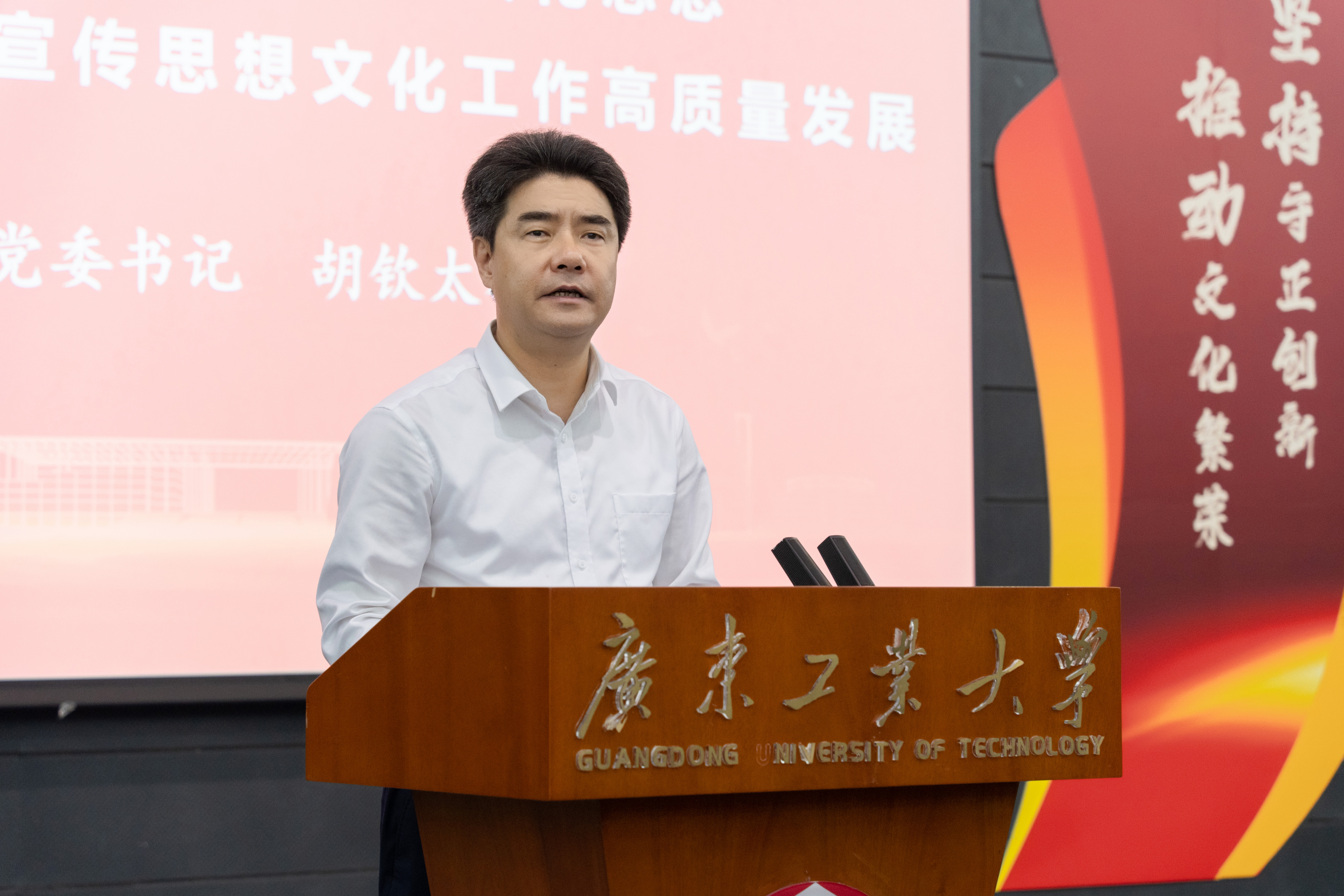 12月13日上午,学校在大学城校区大讲堂圆弧报告厅举行党委理论学习中心组(扩大)会,深入学习贯彻习近平文化思想,认真学习贯彻全国、全省宣传思想文化工作会议精神。广东省社科联党组书记、主席张知干应邀作学习辅导报告。学校党委书记胡钦太主持会议。
