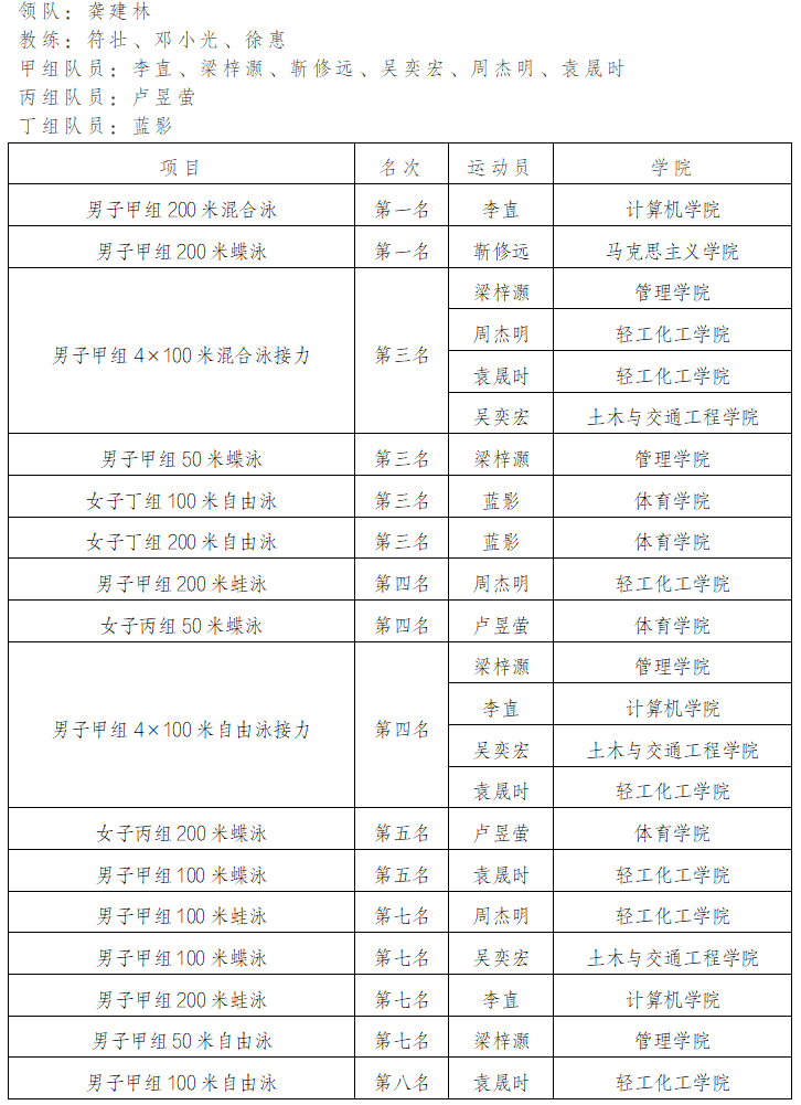 学校游泳队在第22届中国大学生游泳锦标赛总决赛中获2金4铜