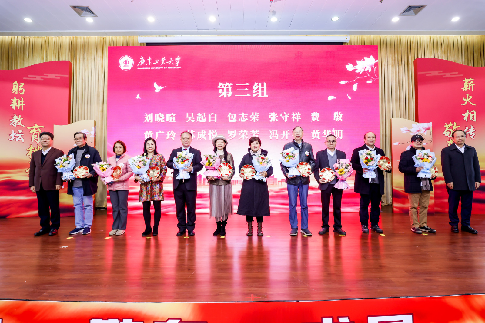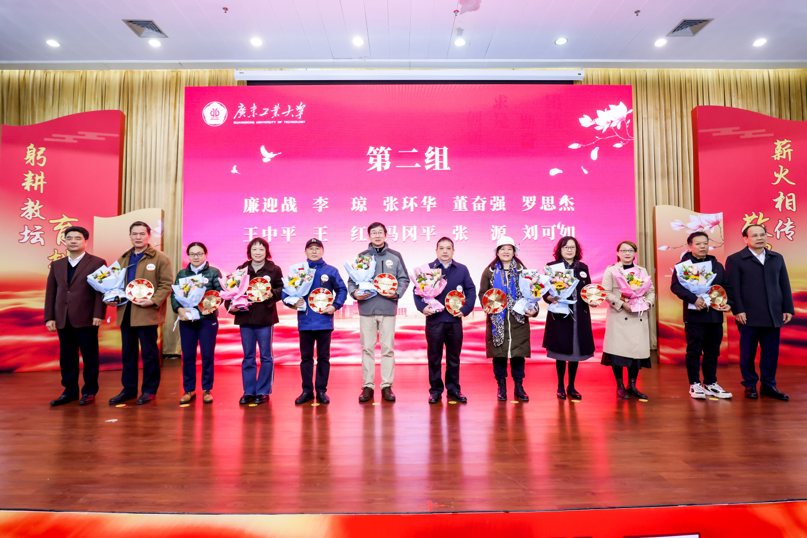 胡钦太代表学校向为广工辛勤奉献一生的全体荣休教职工,表达最真挚的感谢之情、留念之情和关爱之情。他强调教师荣休是学校的大事盛事,既体现了崇尚“尊师重教”的光荣传统,也是学校健全教师荣誉体系的重要活动,更是不断传递师德力量,厚植校园师道文化的有力举措。他希望全校教职工以荣休教职工为榜样,大力弘扬教育家精神,以“心有大我、至诚报国”的理想信念、“言为士则、行为世范”的道德情操、“启智润心、因材施教”的育人智慧、“勤学笃行、求是创新”的躬耕态度、“乐教爱生、甘于奉献”的仁爱之心、“胸怀天下、以文化人”的弘道追求,投身于教育事业,为建设教育强国、科技强国、人才强国再立新功。