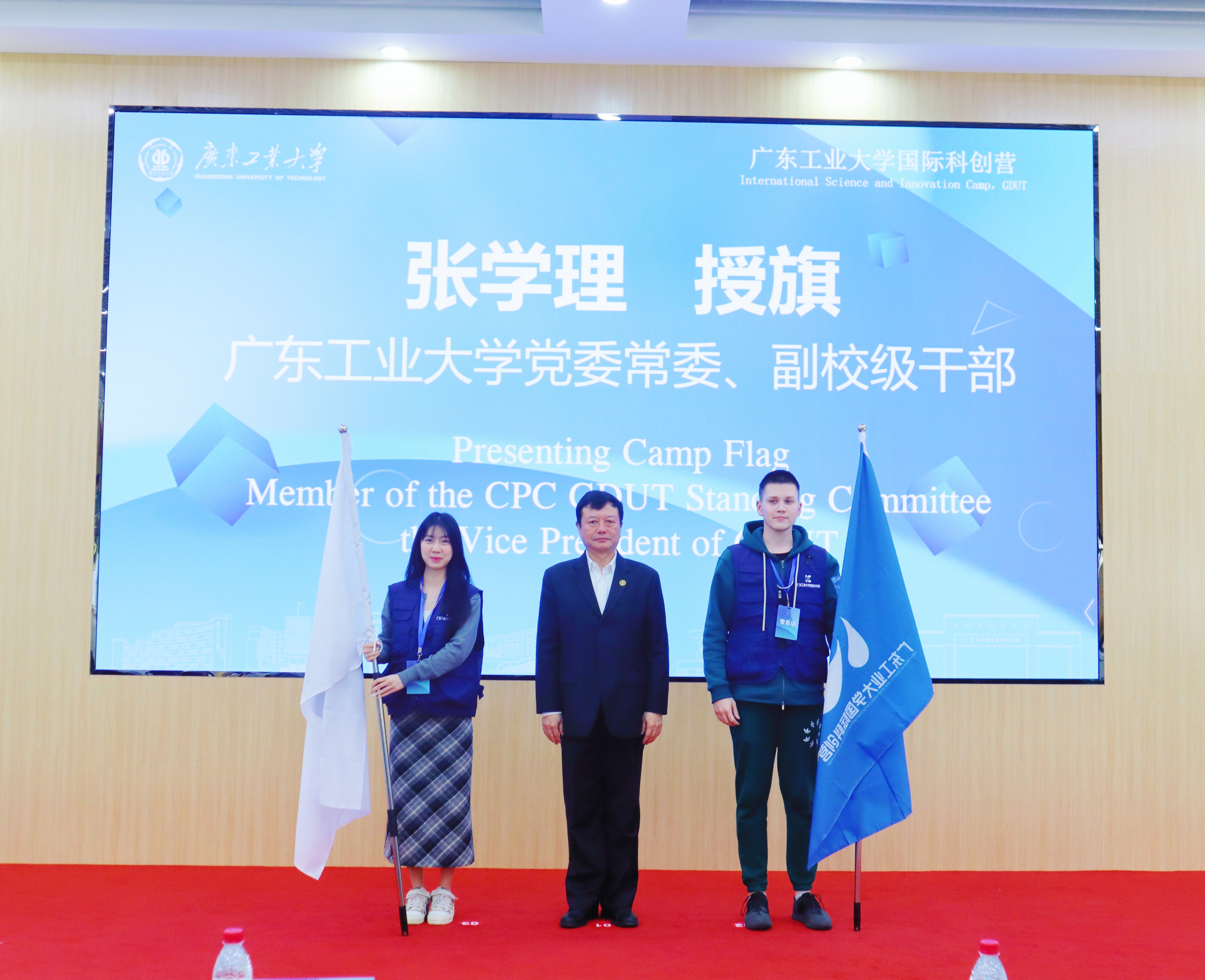 张学理为本次国际营授旗,标志着环亚手机版登录入口国际科创文化交流旅程正式启航。