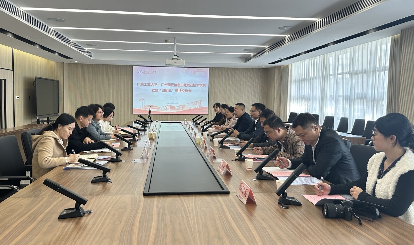 3月20日上午,广州现代信息工程职业技术学院党委书记、督导专员朱灿焕一行到访我校,开展党建“组团式”帮扶交流活动。学校党委副书记陈良友亲切会见,党委常委、党委组织部、统战部部长李靖茂及党建帮扶小组成员参加交流活动。