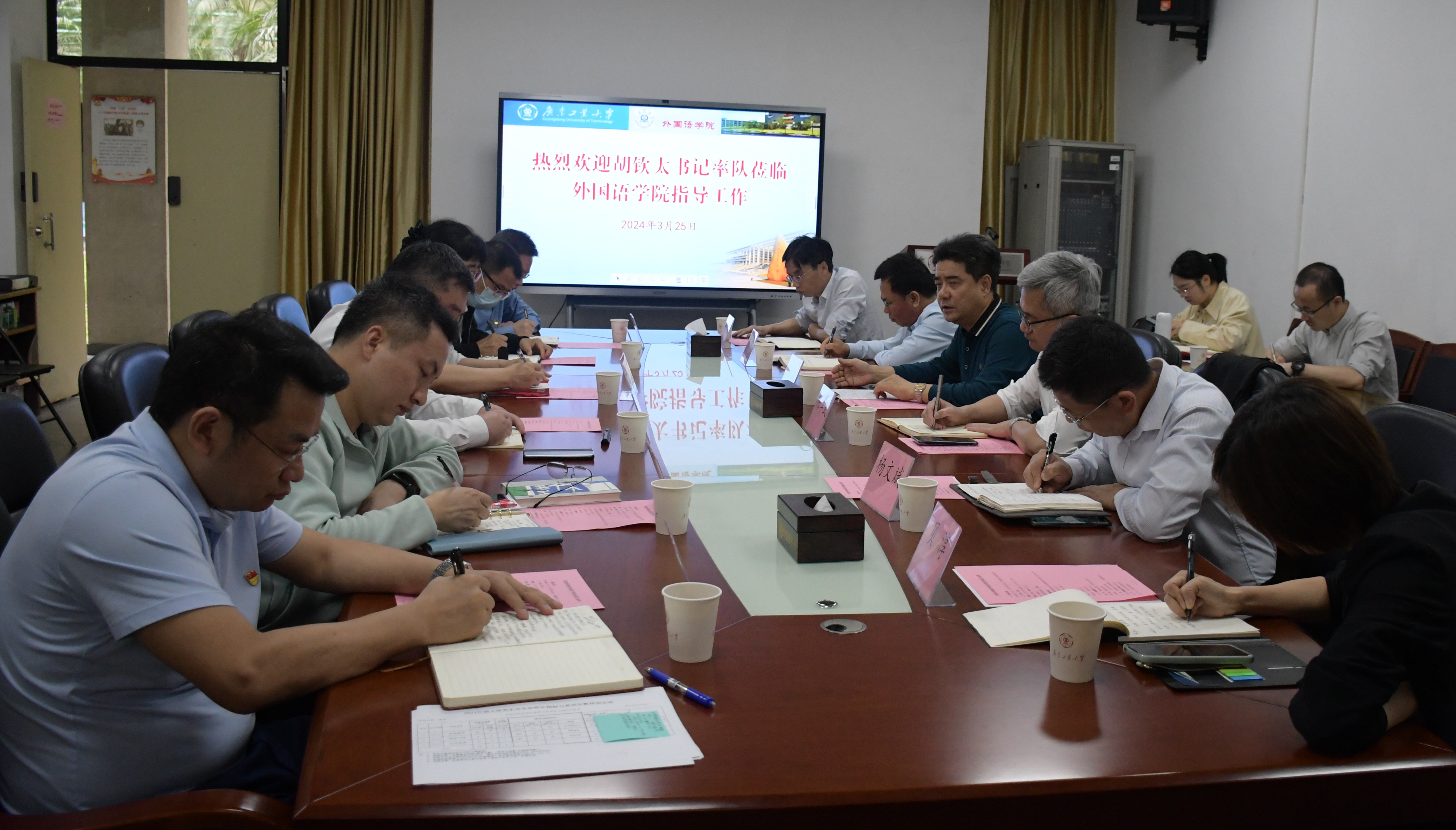 3月25日,学校党委书记胡钦太到物理与光电工程学院和外国语学院调研指导工作。校党委副书记陈良友、陈卓武陪同调研。党委办公室、校长办公室、党委组织部、发展规划处、教务处、科管部、党委教师工作部、人事处等相关负责人参加调研,两学院领导班子成员和教职工代表分别参加座谈。