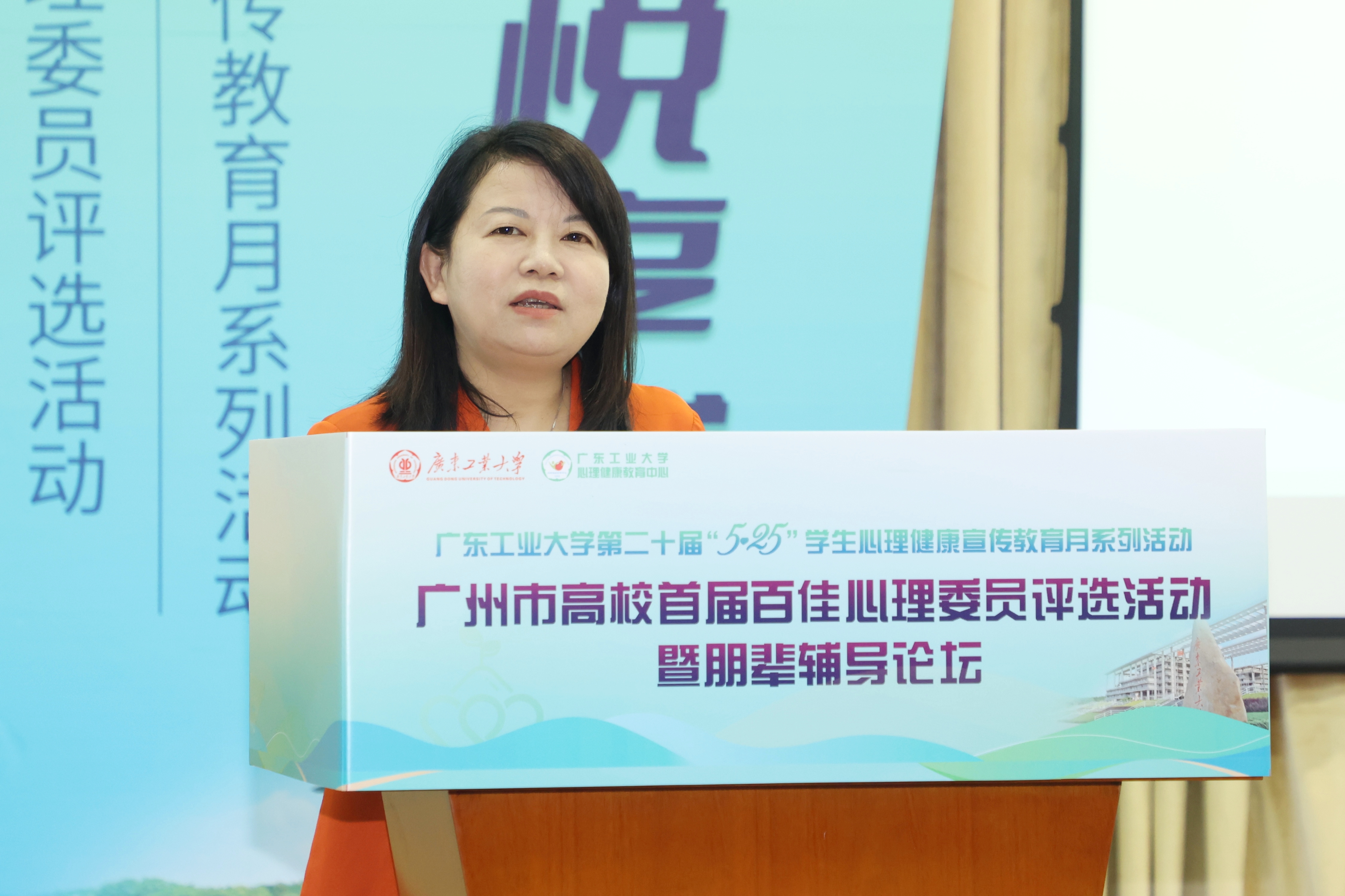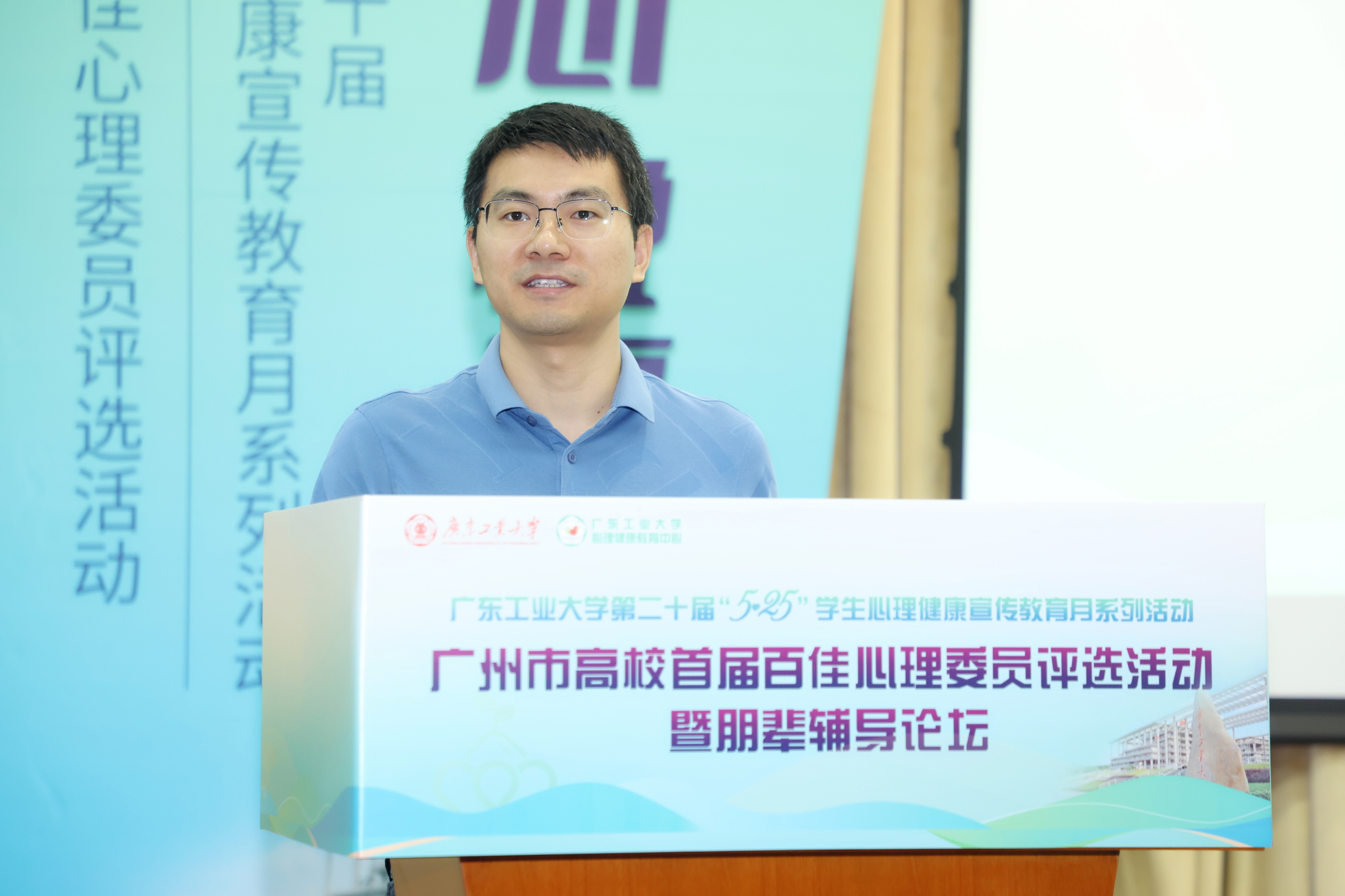王孟成教授代表广州市心理学会对我校举办的心理委员评选与论坛表达了肯定与感谢。他指出,朋辈辅导工作在帮助学生建立积极心态、缓解心理压力方面具有重要作用,并预祝会议圆满成功。