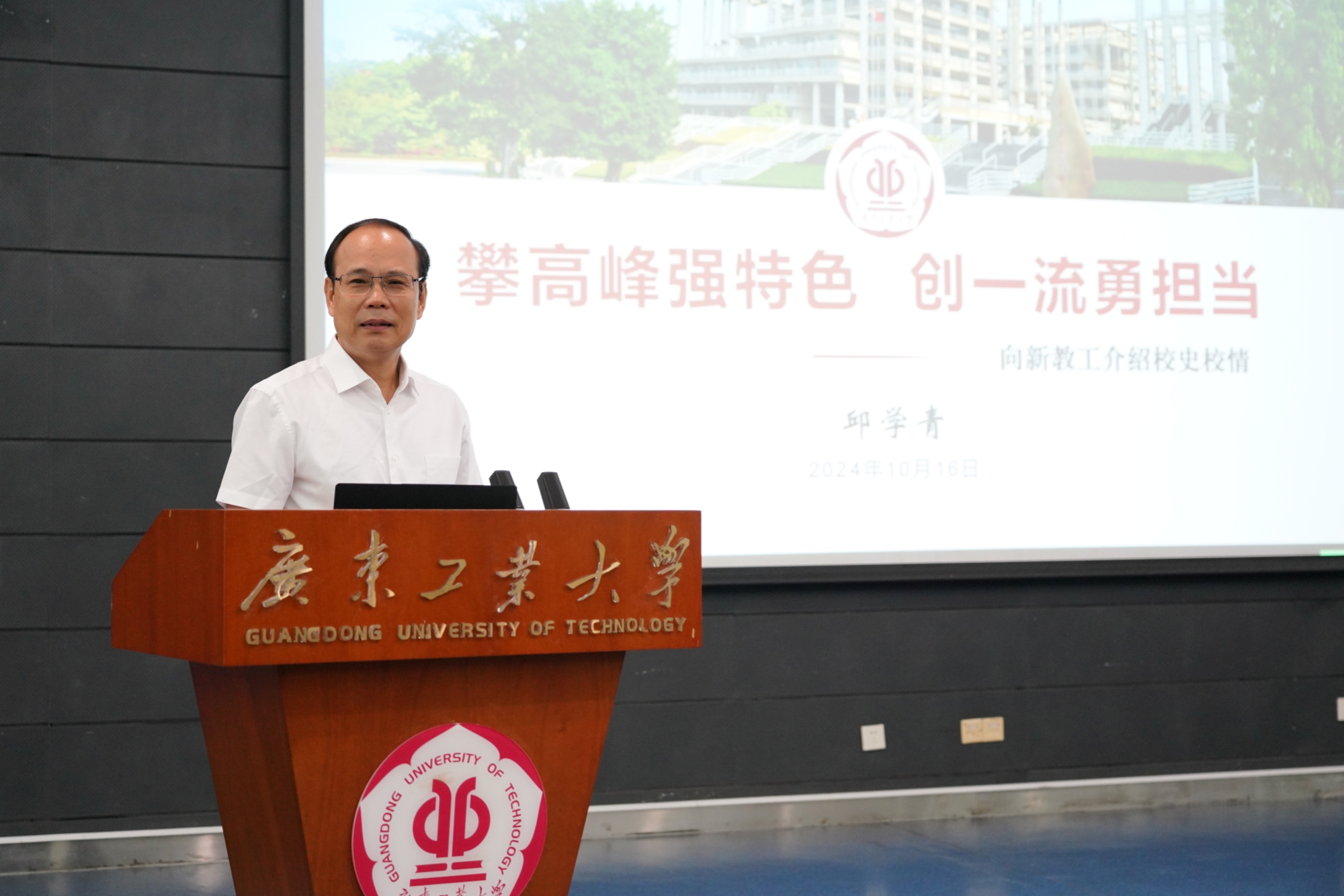 鉴往知来,砥砺前行。10月16日上午,学校党委副书记、校长邱学青在大学城校区圆弧报告厅为2024年新入职教工岗前培训作校情校史教育报告,激励新教工学校史、知校情、传校风,筑责任,勇担当。党委副书记朱蔚蔚主持报告会。