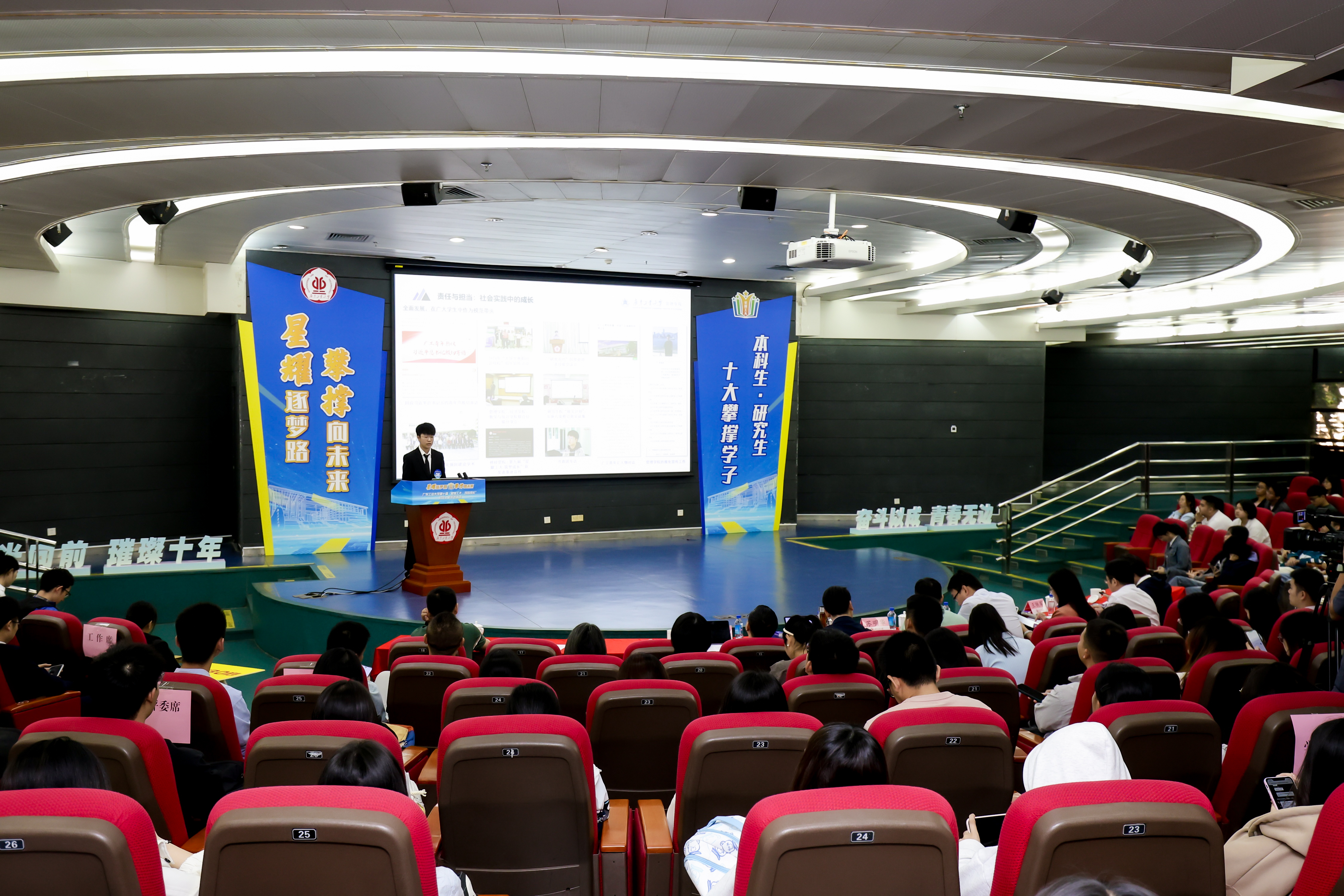 11月8日,学校在大学城校区大讲堂举办学校第十届“星耀工大·助梦成长”校园之星评选活动之“十大攀撑学子”终选评审活动,活动分“十大攀撑学子”(研究生)、“十大攀撑学子”(本科生)两个阶段进行。广东省教育厅思想政治工作与宣传处、广东财经大学党委学生工作部,广东技术师范大学党委学生工作部,以及学校党委学生工作部、研究生院、心理健康教育中心、教务处等单位相关负责人担任专家评委。各学院教师评委代表、学生评委代表与学生观摩团共计近250人参加活动。