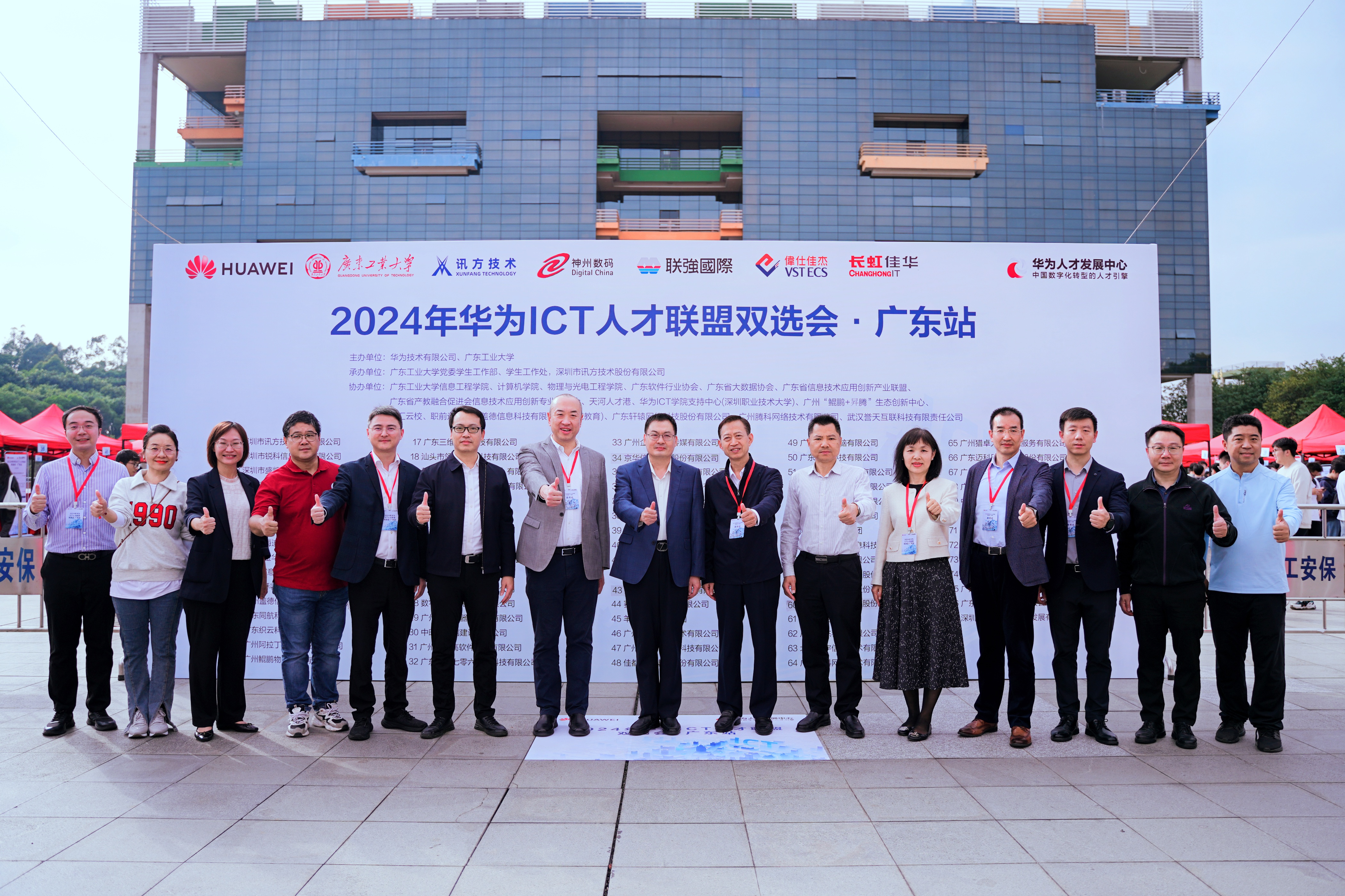 王新提出,华为与高校共建“华为ICT学院”,将行业需求、前沿ICT知识与技能源源不断深入学校,持续培育面向当前及未来需求的ICT人才。目前华为在广东有超过40所华为ICT学院,每年有超过20000名高校同学学习华为ICT 课程,3000名学生获得华为职业认证,今年更有超过120所广东高校参与华为ICT大赛。通过“课-证-赛-岗”的培养模式,实现人才与产业闭环。希望以本次活动为契机,未来在省教育厅的指导下,协会、企业、高校和老师同学们的支持下,共同将华为ICT人才联盟双选会打造成为广东ICT行业人才供需对接的金色名片。