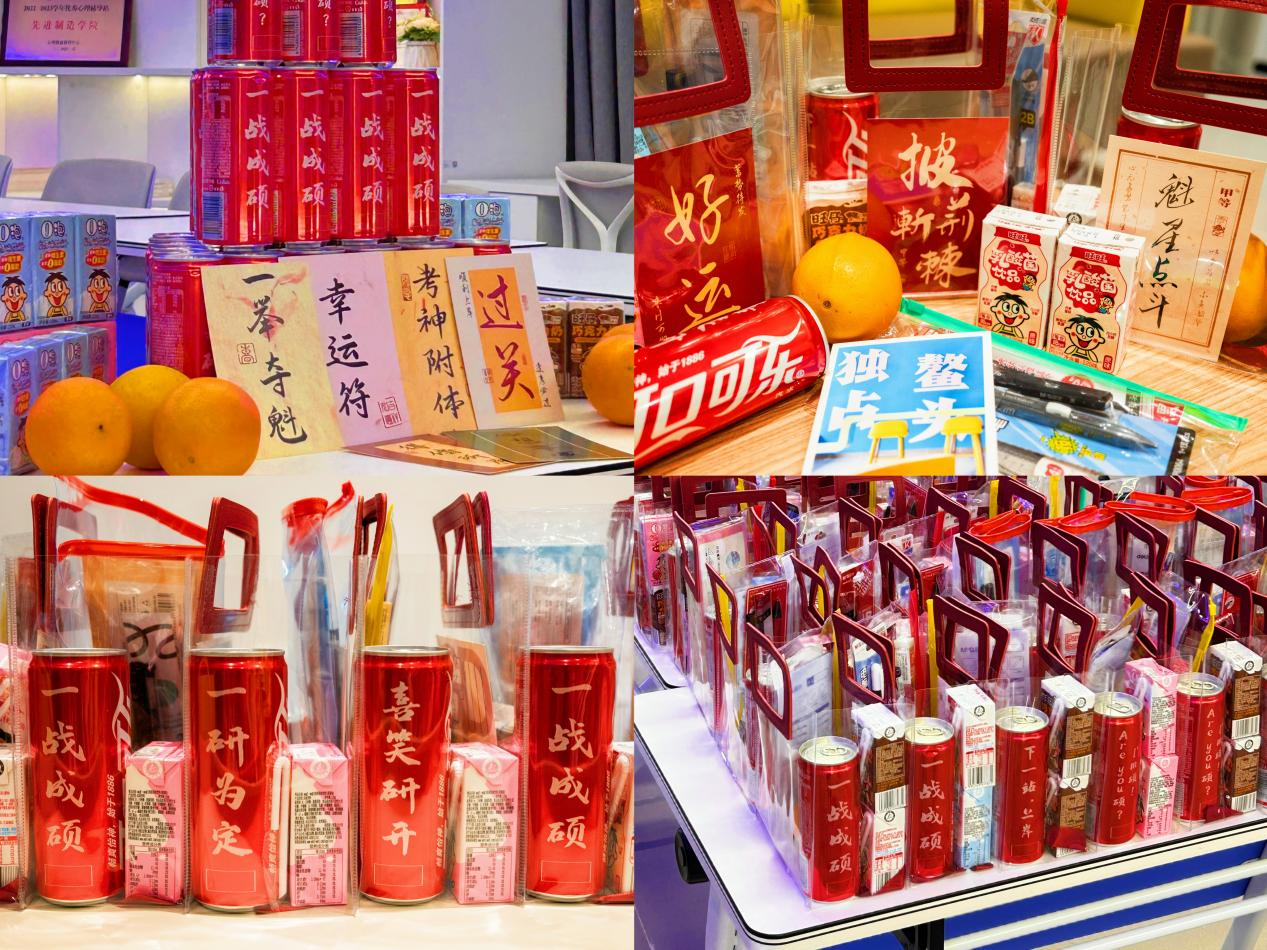 揭阳校区先进制造学院相关负责人、毕业班辅导员和学生代表们带着满载祝福的“考研加油包”,走进考研自习室,以礼物做媒,为考研学子们传递必胜信念,以行动暖心,诠释学校“以生为本,爱生如子”的教育理念。在这份加油包内,不仅有考研文具套盒、心想事“橙”水果、福气“旺旺”饮品、“金榜题名”可乐,更有校区师生亲笔题写的祝福卡片,礼轻意重、字少情深,每一份礼物都饱含校区对考研学子们的期望与祝福。