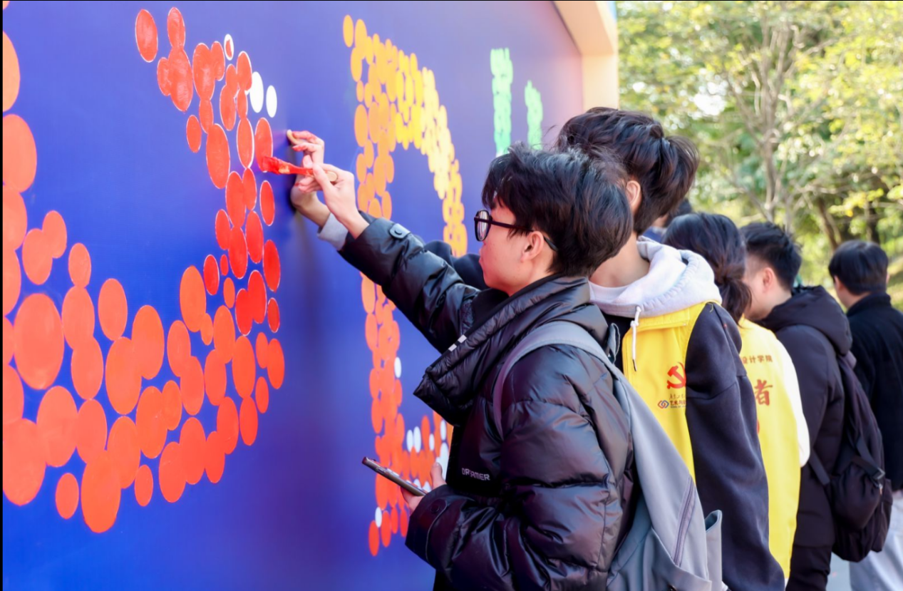 12月19日下午,广工校训主题知校爱校荣校彩绘共创实践活动在大学城校区挑战路广工通道举办,首次发布AI创作的活动主题曲《我爱广工的10000个理由》。学校党委副书记陈卓武出席并讲话,党委学生工作部、总务部、艺术与设计学院、国际教育学院相关负责人以及各学院学生代表、楼长代表、彩绘共创志愿者代表等参加活动。