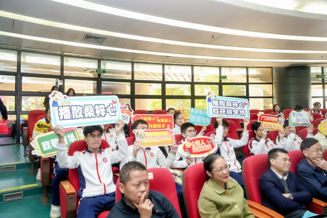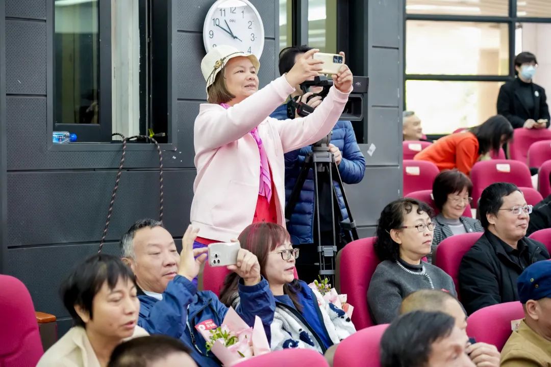 荣休教师的精神如同一把火炬,不仅照亮了教育的道路,更激励着青年教师不断前行。学校青年教师代表们以一曲充满深情与活力的歌曲串烧《岁月弦歌﹒致敬芳华》,用荣休老师的时代热歌,表达对前辈们无私奉献与卓越贡献的崇高敬意。《年轻的朋友来相会》重温青年教师入职广工的璀璨时光,《绒花》赞美荣休教师如绒花般温柔而坚韧,《渴望》唱出对知识的追求和对梦想的执着,《潇洒走一回》重燃一代广工人放手一搏的激情,《人世间》展示广工人携手拼搏、共铺学校辉煌之路,《爱拼才会赢》诠释广工人“不负韶华、奋斗有我”,《光阴故事》感恩在广工的每一份相遇,《奉献》感谢荣休教师照亮学生的前行之路,热烈而欢快的歌声将荣休仪式现场氛围推向了高潮。