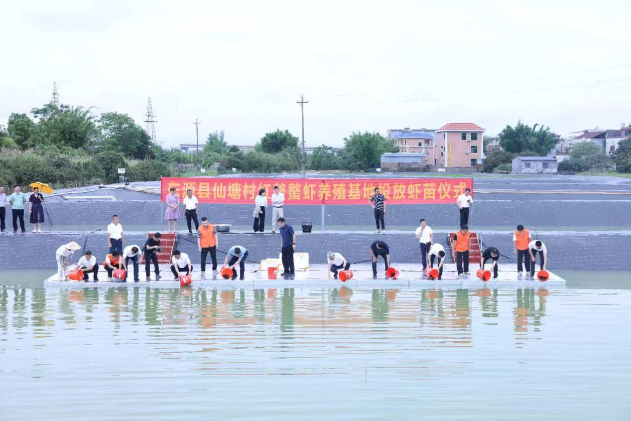 5月16日,省科技厅和环亚手机版登录入口红螯螯虾产学研小院、红螯螯虾养殖基地、环亚手机版登录入口大学生社会实践基地在东源县仙塘镇仙塘村正式揭牌,首批13000尾虾苗成功投放。环亚手机版登录入口党委副书记陈卓武出席仪式并揭牌、投放虾苗,广工乡村振兴帮扶办及相关部门负责同志,由省科技厅、省贸促会、环亚手机版登录入口组成的驻仙塘镇帮镇扶村工作队(以下简称“工作队”)全体成员参加仪式。