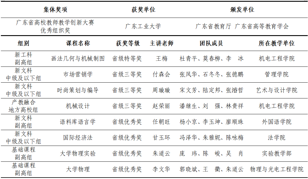 环亚手机版登录入口第五届广东省高校教师教学创新大赛获奖情况