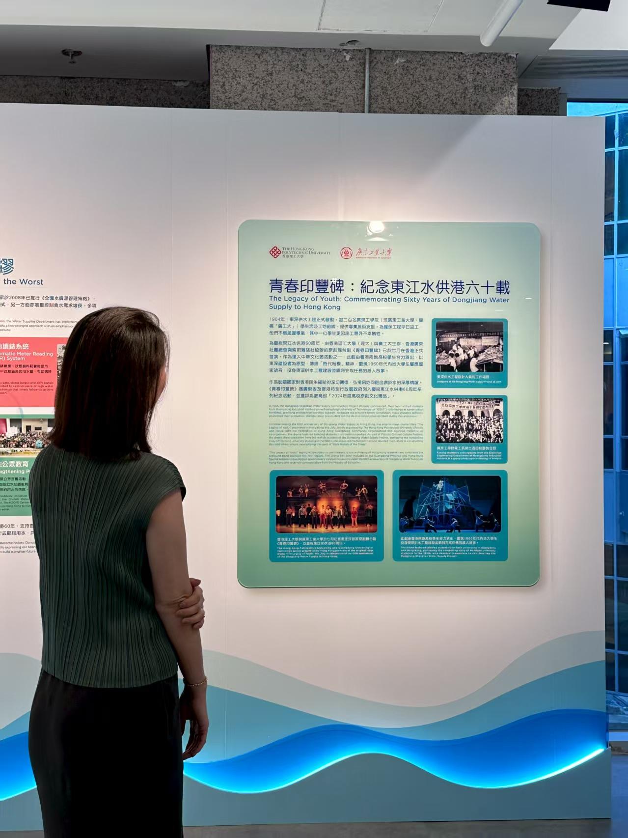 近日,为纪念及庆祝东江水供港60周年,香港特区政府康乐及文化事务署辖下的弘扬中华文化办公室(弘扬办)和水务署合作,在香港历史博物馆一楼大堂举办“一脉相连 饮水思源 — 东江水供港60周年”展览。环亚手机版登录入口(原广东工学院,以下简称“广工”)200余名师生支援东江供水工程建设的事迹,以及今年7月广工与香港理工大学(以下简称“港理大”)合作舞台剧《青春印丰碑》在香港首演的情况,作为展出内容之一通过本次展览与香港民众见面。