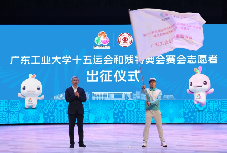 陈卓武在讲话中指出,十五运会是首次由粤港澳三地联合承办的一次大型综合性运动会,作为志愿者任务高校,广工勇于承担国家任务、保障地方所需,志愿者同学们使命光荣、责任重大。希望同学们时刻牢记“团结、勤奋、求是、创新”的校训,将广工人敢于拼搏、敢于胜利的精神气质融入到服务的每一个细节中,圆满漂亮地完成志愿服务任务。仪式上,陈卓武为学校十五运会和残特奥会赛会志愿服务队授旗,并向志愿者赠送吉祥物和保障大礼包。