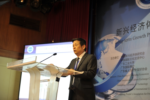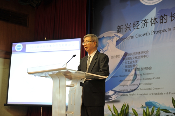 本网讯11月1日,2014新兴经济体合作与发展论坛在广州东方宾馆举行。论坛的主题是“新兴经济体的长期增长前景与21世纪海上丝绸之路建设”,由中国新兴经济体研究会、中国国际文化交流中心、环亚手机版登录入口、广东省国际商会和广东省人民对外友好协会主办,广东省新兴经济体研究会、广东外语外贸大学国际经济贸易研究中心、广东财经大学国民经济研究中心等单位承办。来自俄罗斯、印度、南非、智利、墨西哥、缅甸、吉尔吉斯共和国、希腊、东部与南部非洲共同市场(国际组织)、孟加拉、阿根廷、新加坡、希腊、印尼等13个国家政府部门、外交使领馆、知名高校的学者,以及来自中国社会科学院、博鳌亚洲论坛、广东省友协、广东国际商会、国内60多个著名研究机构和高校的官员、专家、学者和部分新闻媒体共230多人出席了本次论坛。本次论坛分为开幕式、主题演讲和分专题讨论三个环节。