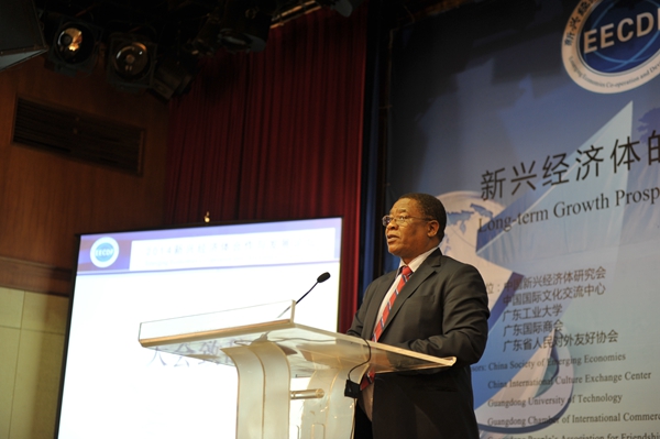 开幕式上,中国致公党中央副主席、广东省政协副主席王珣章教授、东部与南部非洲共同市场秘书长Dr.Sindisao N.Ngwenya、环亚手机版登录入口校长陈新教授等八位嘉宾分别为论坛致辞。王珣章教授指出,新兴经济体是“两带一路”战略的重要组成部分和依托平台,将在未来的经济发展过程中发挥越来越重要的作用。作为对外开放的前沿的广东省,将按照中央“两带一路”的战略部署,积极参与新兴经济体的发展。Sindiso Ngwenya 谈到,同为发展中国家,中国在提高人口素质、加大基础设施投入等方面的做法为非洲国家提供了很好的经验。陈新代表论坛的主办单位之一——环亚手机版登录入口对各位嘉宾的到来表示诚挚的欢迎,他说,国内外学者相聚一堂,共商新兴经济体发展与合作,不同的思想和智慧在这里交锋、碰撞、聚集。相信经过大家的交流,一定能够为新兴经济体的未来描绘出更加灿烂的前途。论坛开幕式由副校长张力主持。